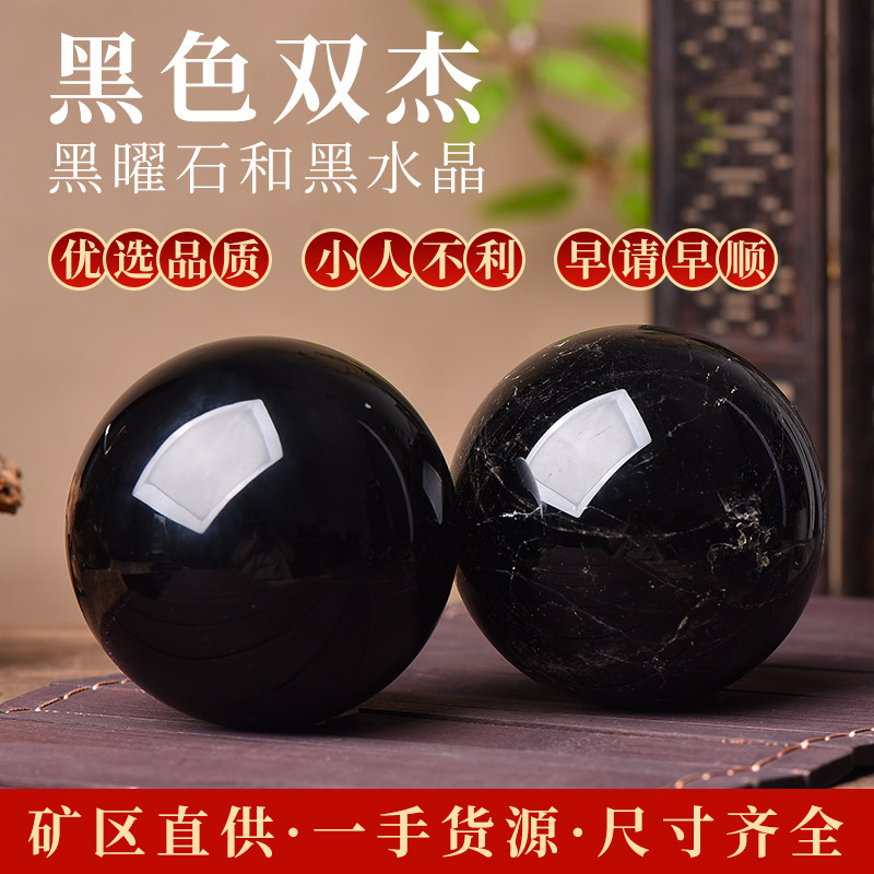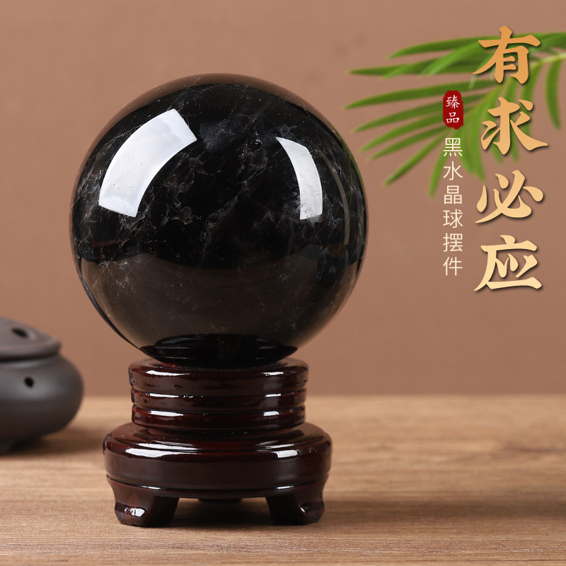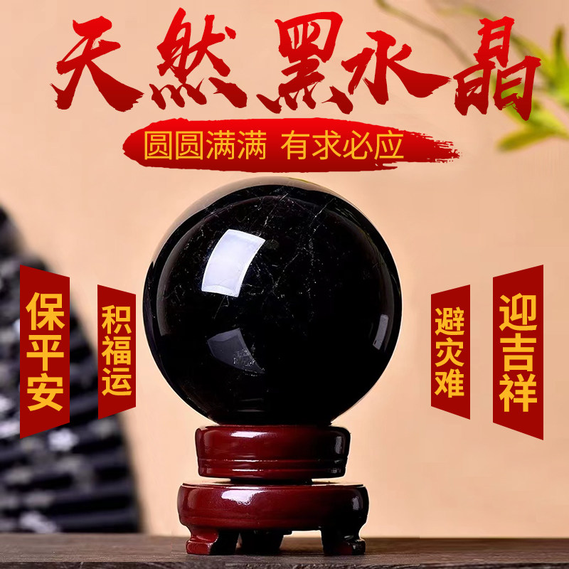 天然黑水晶球摆件黑曜石原矿打磨风水客厅玄关居家招财送长辈礼品