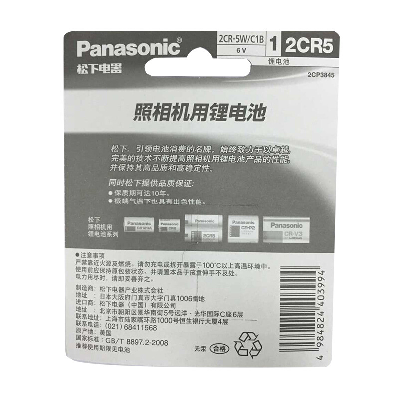 松下相机电池2CR5锂电池6V仪器仪表/相机锂电池 1粒装