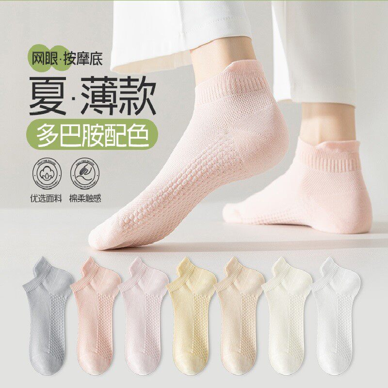 松山棉店足底按摩袜子纯棉抗菌防臭男女短袜中筒袜长筒夏薄款棉袜