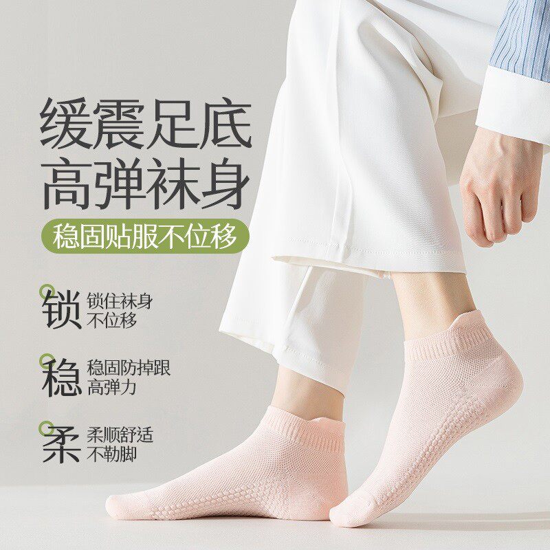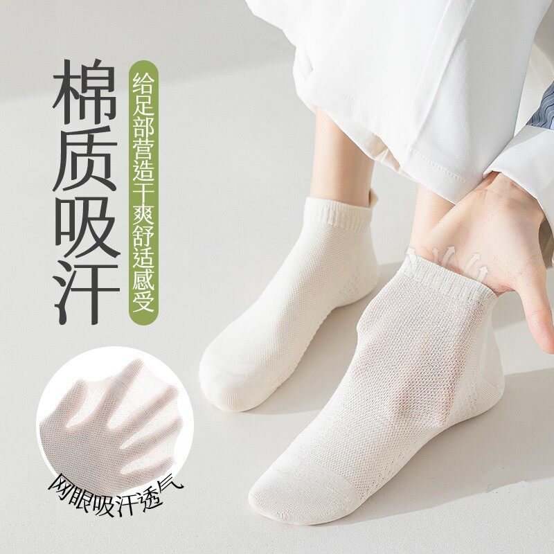 袜子女夏季薄款短袜棉质防臭夏天白色不掉跟船袜吸汗短筒黑色网眼