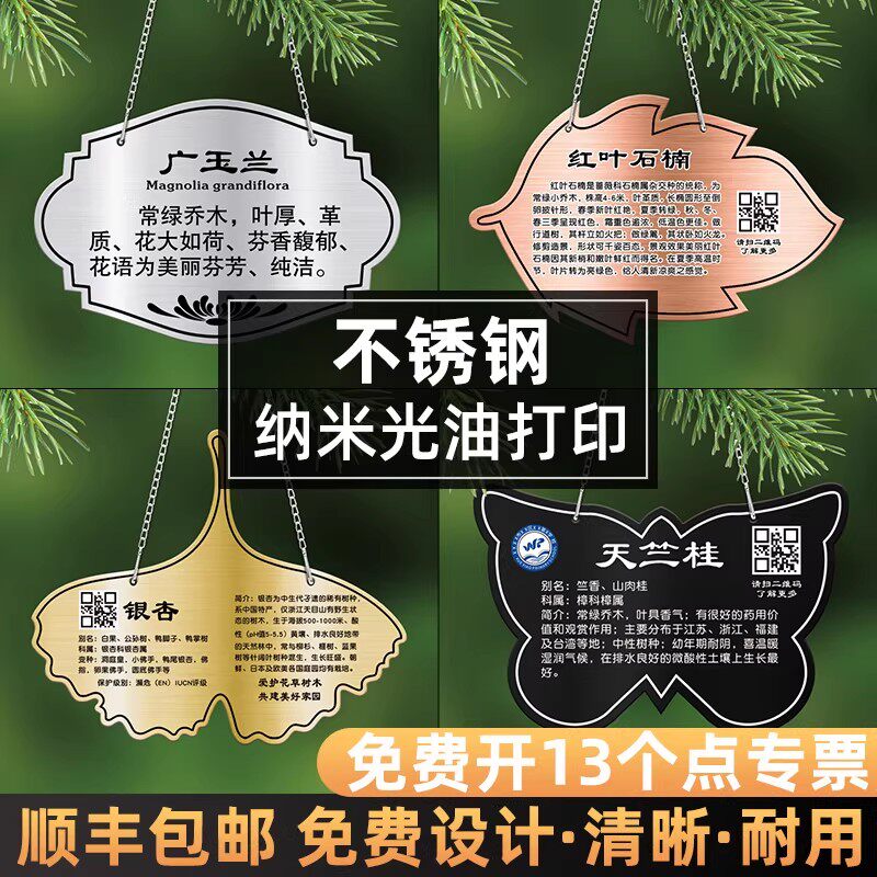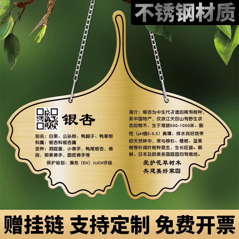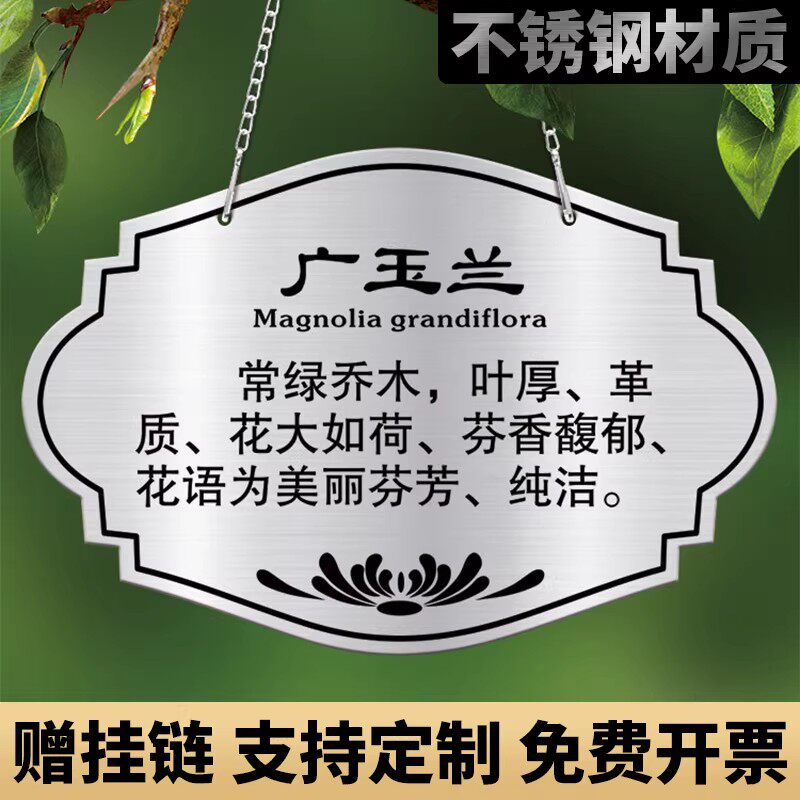 不锈钢树牌植物挂牌学校公园园林爱护花草树木果树认领标识标牌绿化绿植信息说明介绍铭牌植树节金属花卉吊牌