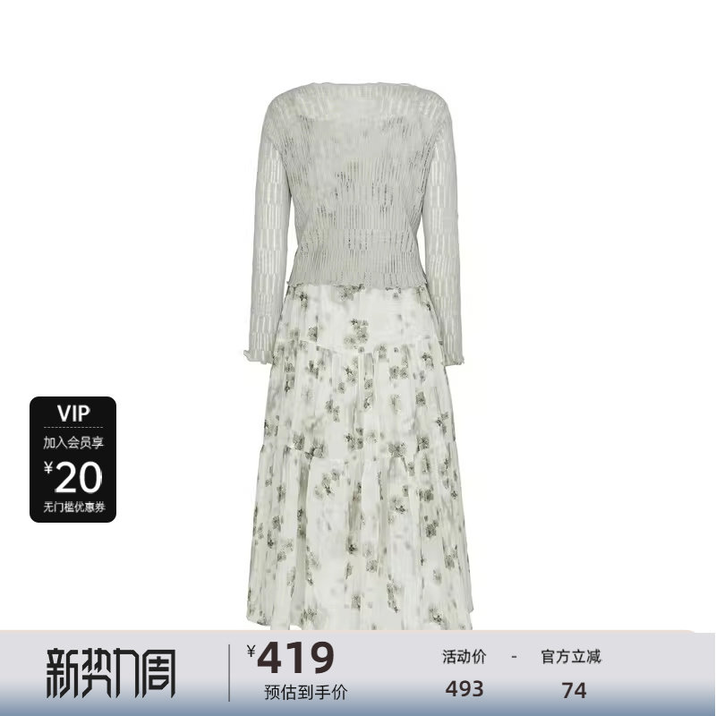 sdeer圣迪奥女装印花收腰网纱针织衫吊带裙套装S242Z1458