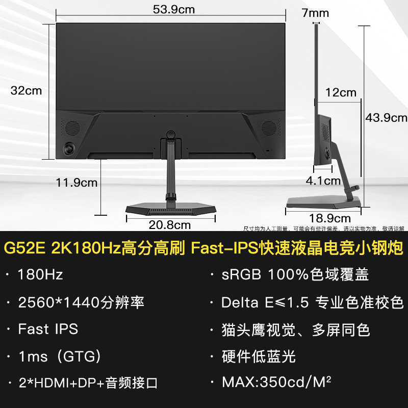 SANC盛色 23.8英寸2K原生180Hz显示器 硬件低蓝光电脑电竞屏 G52E