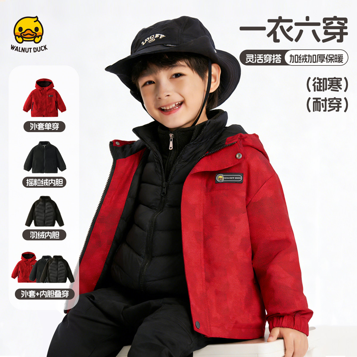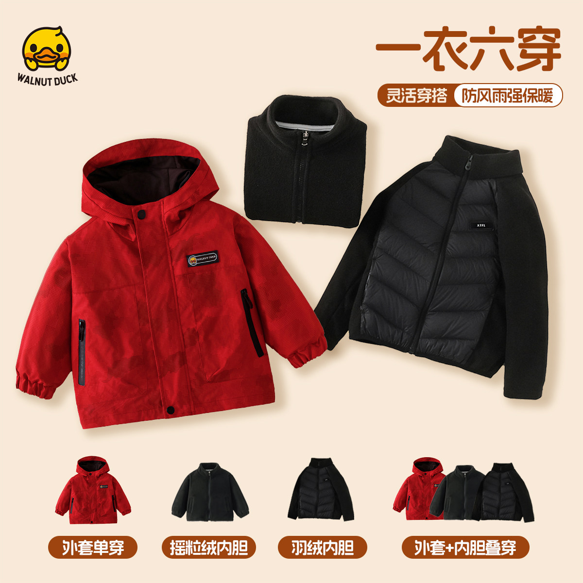 核桃小黄鸭儿童三防男童冲锋衣外套女童三合一红色新年喜庆上衣