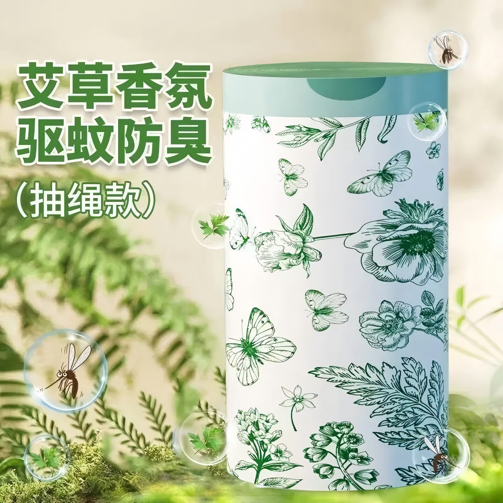 免撕抽绳垃圾袋家用手提式宿舍加厚自动收口厨房山茶花清洁袋印花