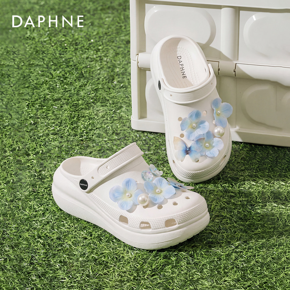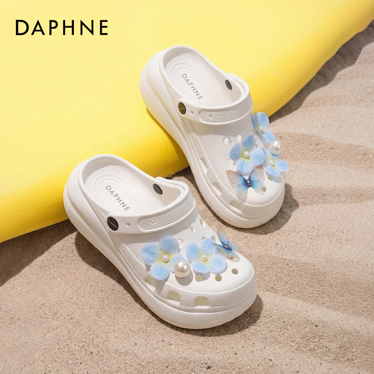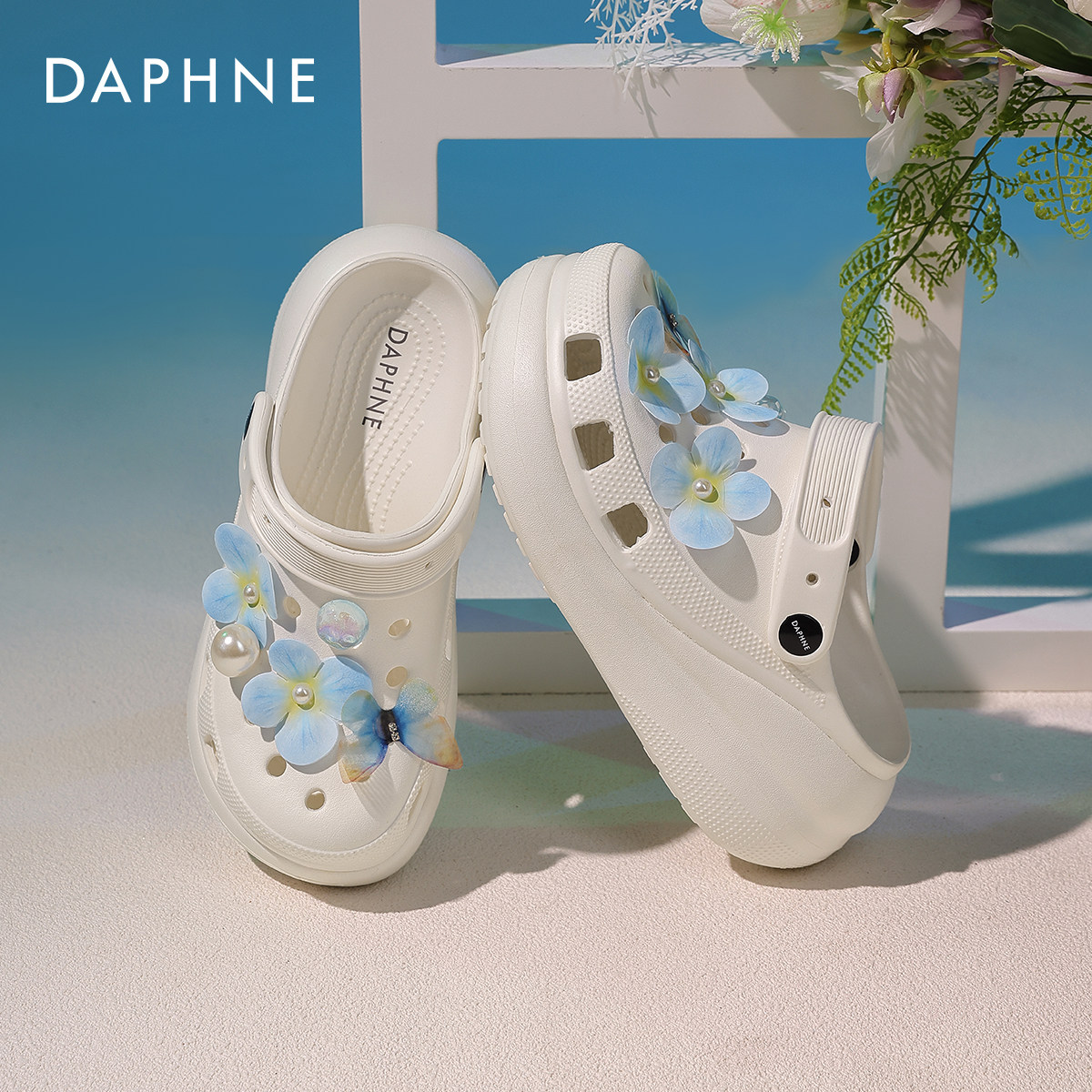 达芙妮厚底洞洞鞋女款2026新款夏季外穿半拖增高凉鞋包头沙滩拖鞋