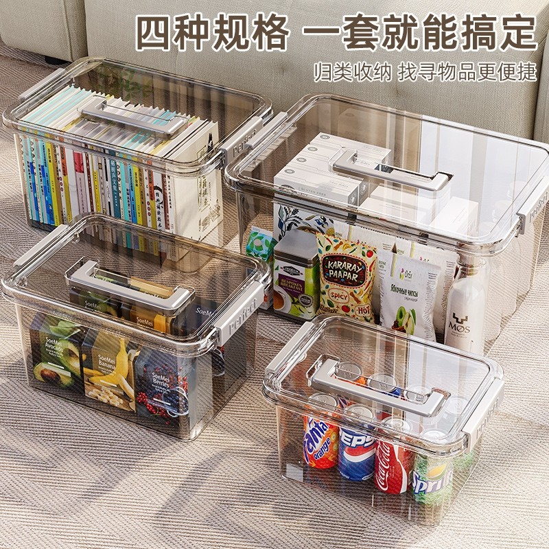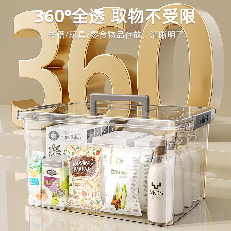 手提收纳箱家用玩具塑料加厚零食大容量透明储物筐带盖密封宿舍