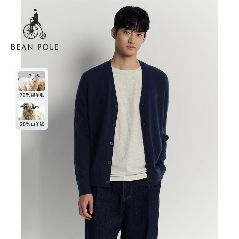含山羊绒BEANPOLE滨波春季男士休闲v领通勤多色基础长袖开襟毛衫