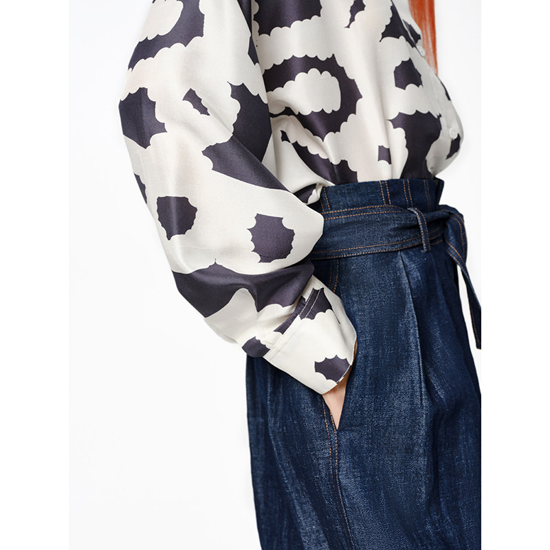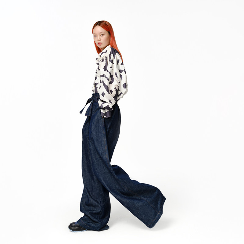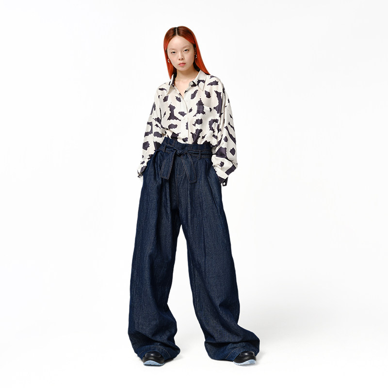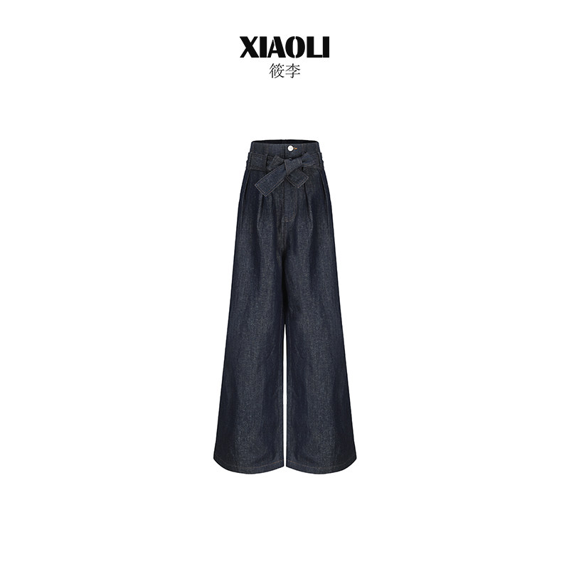 【伊能静推荐】XIAOLI筱李春夏棉麻混纺高腰宽松阔腿牛仔裤