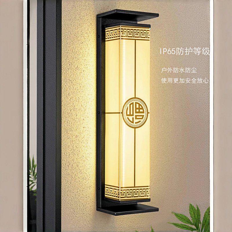 户外壁灯太阳能庭院灯室外防水新中式仿云石玻璃别墅大门口墙壁灯