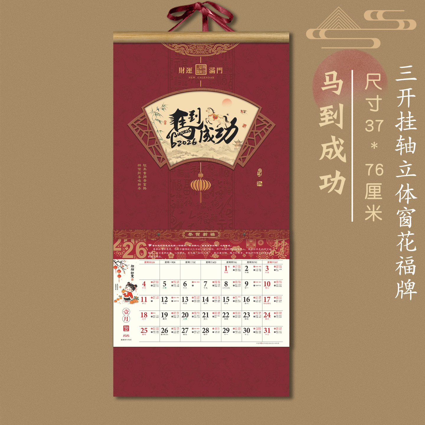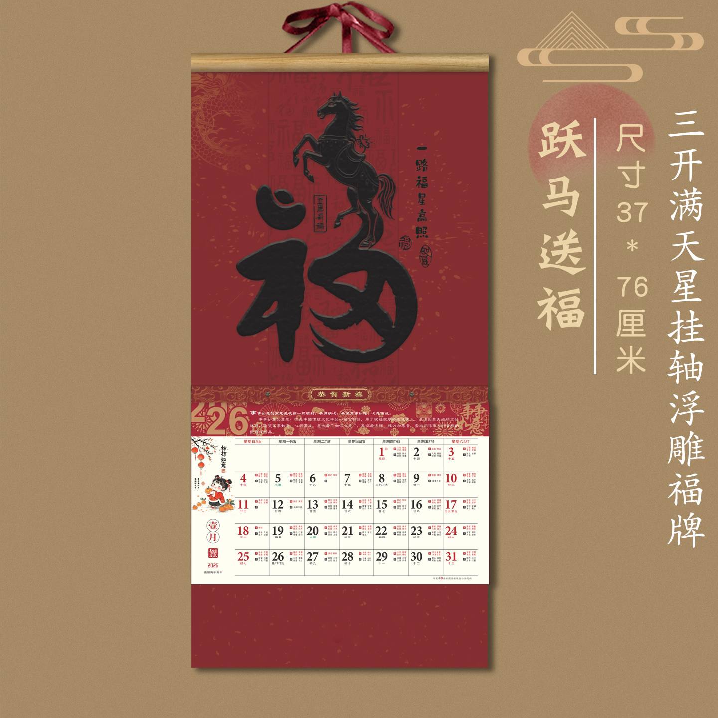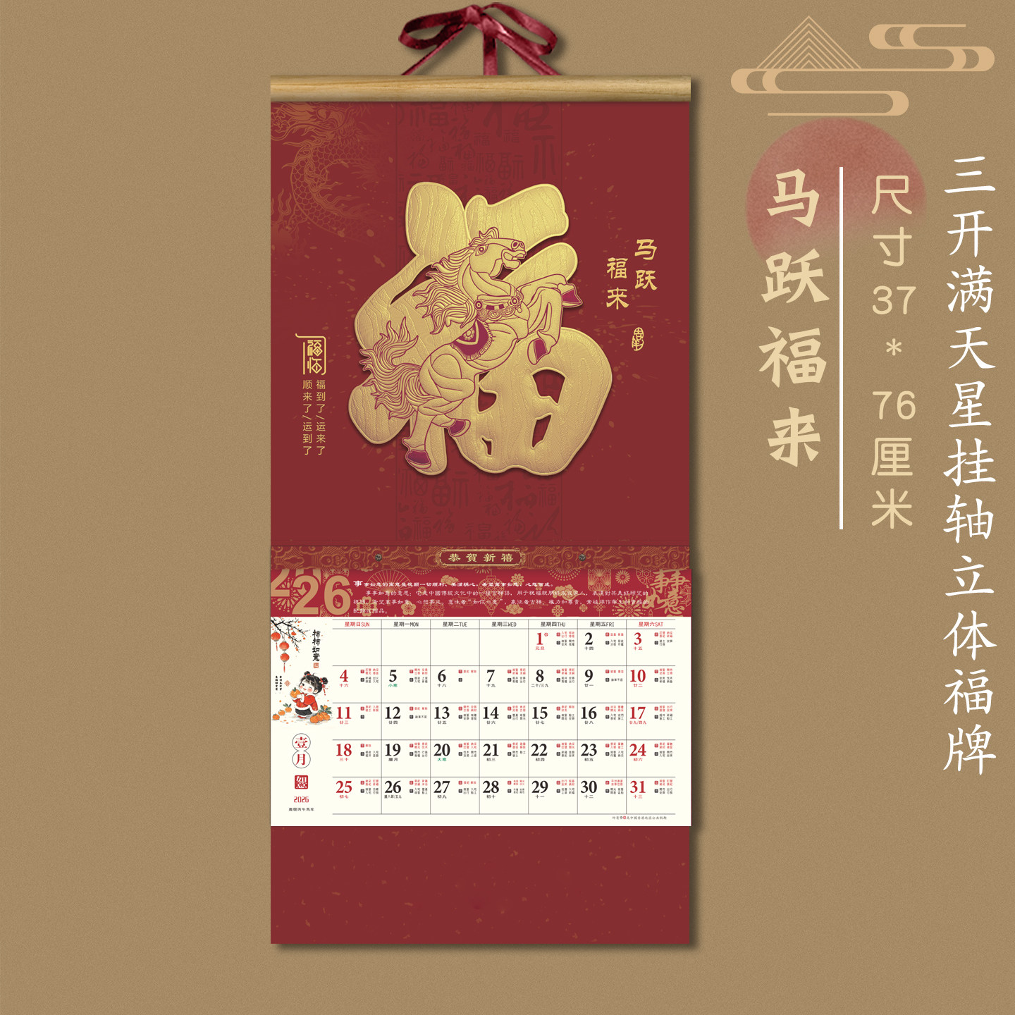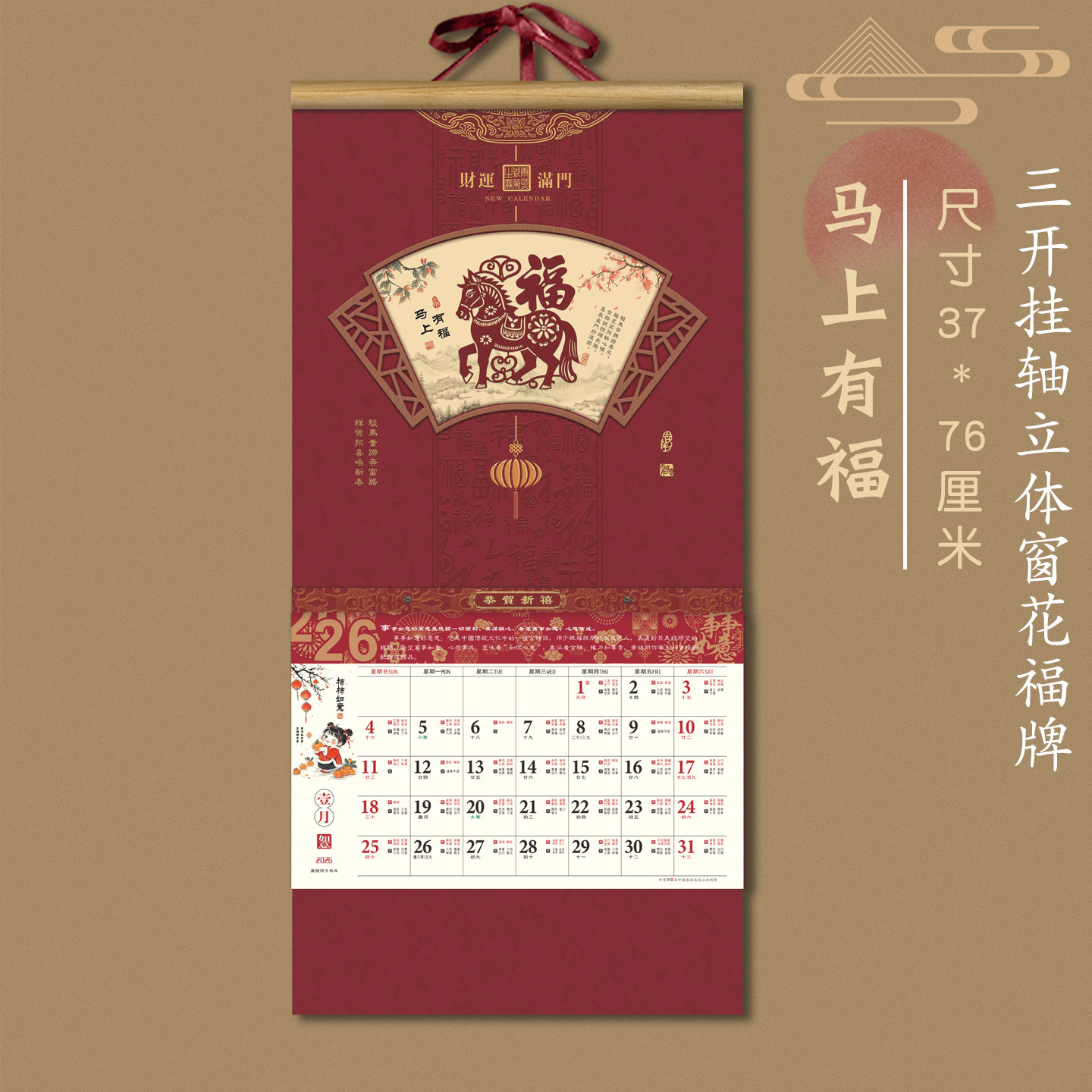 创意新款2026年日历加厚福字马年挂历家用挂墙装饰手撕大字老黄历万年历记事新年礼品公司广告定制定做印刷