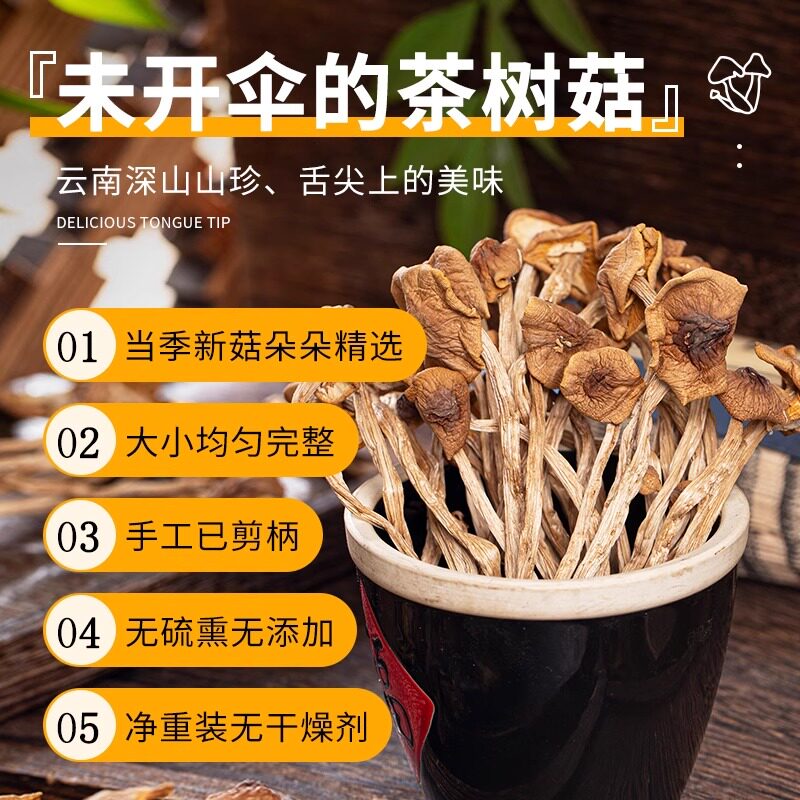 36.6元500g新鲜农家茶树菇干货不开伞茶薪菇250g非特级香菇蘑菇