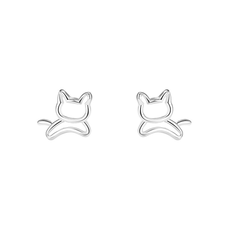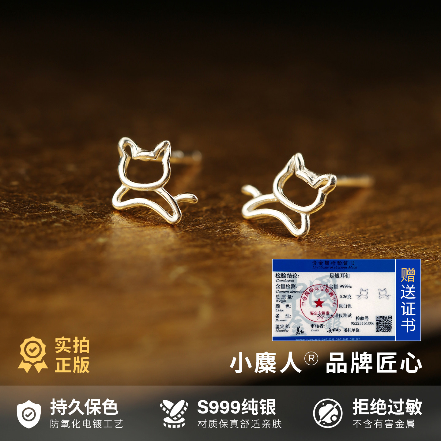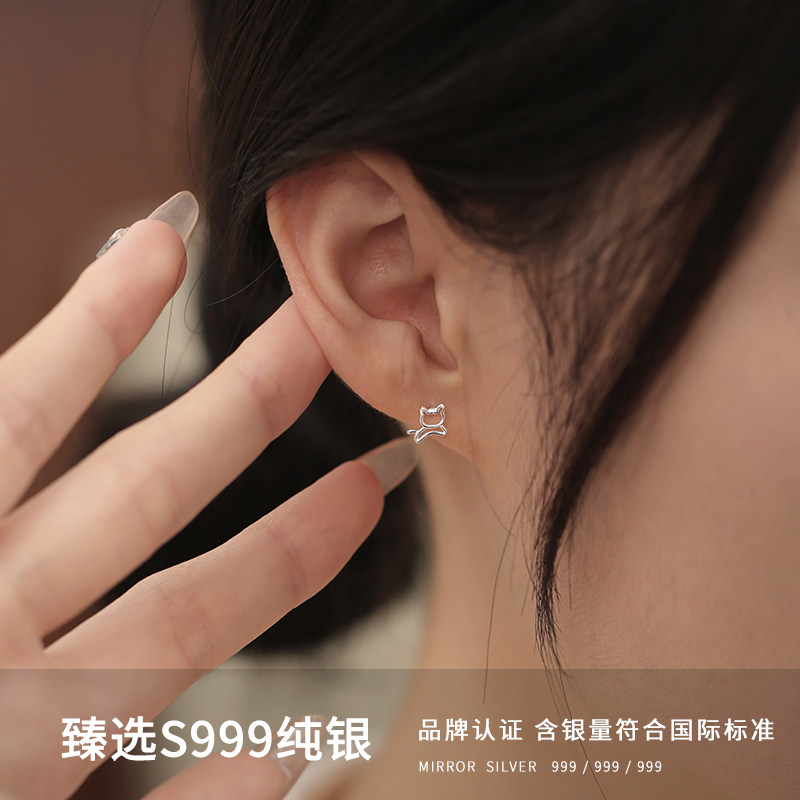 小麋人999纯银猫咪耳钉女耳环耳饰高级感小众设计气质精致潮足银