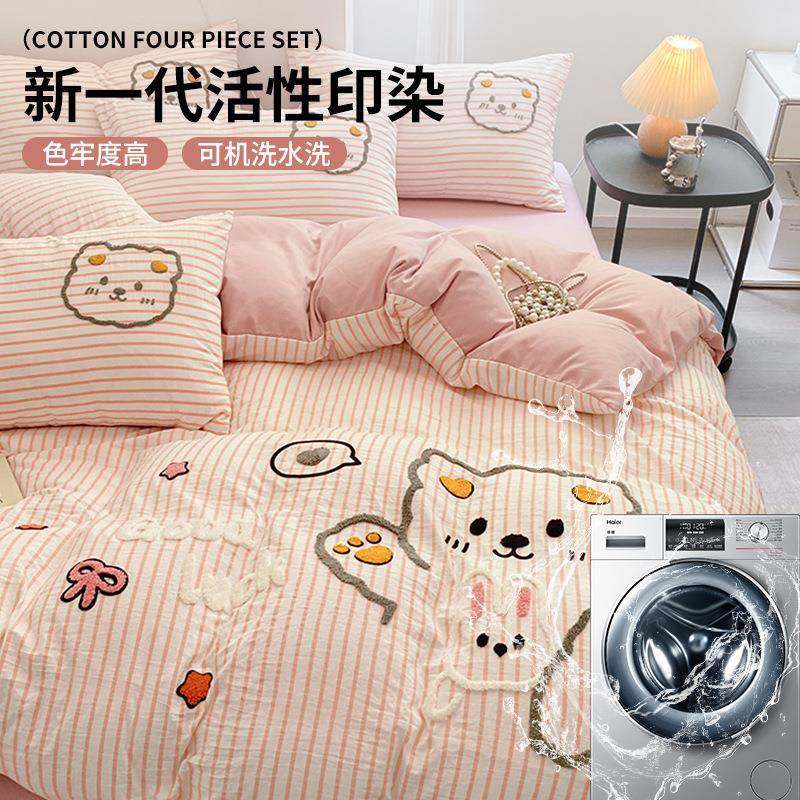 毛巾绣纯棉床上四件套2025新款全棉床单宿舍被套罩三件套床笠床品