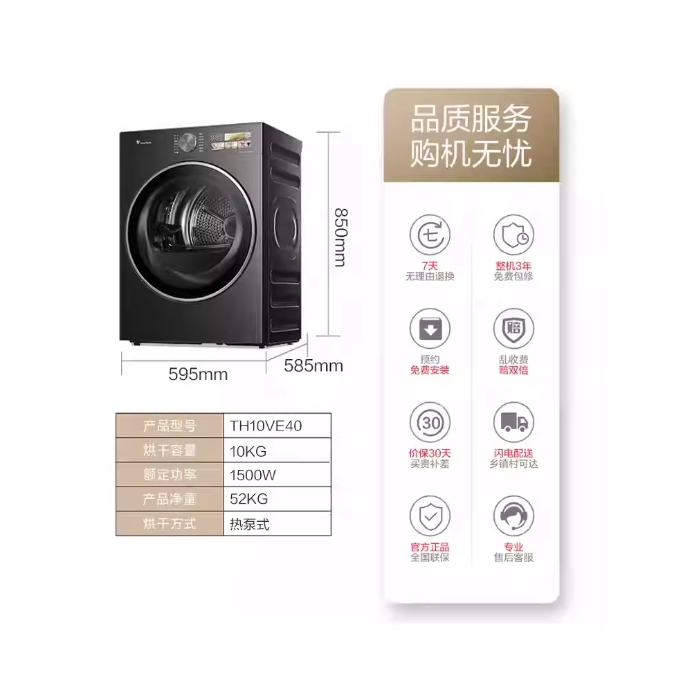 [纯平全嵌]小天鹅小乌梅3.0烘干机10kg家用全自动滚筒热泵干衣机