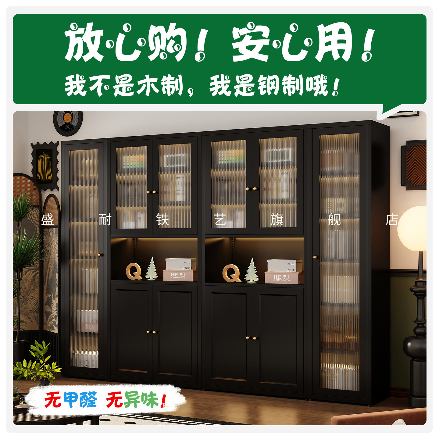 钢制书柜儿童书架落地家用客厅亚克力透明防尘门展示柜储物置物架
