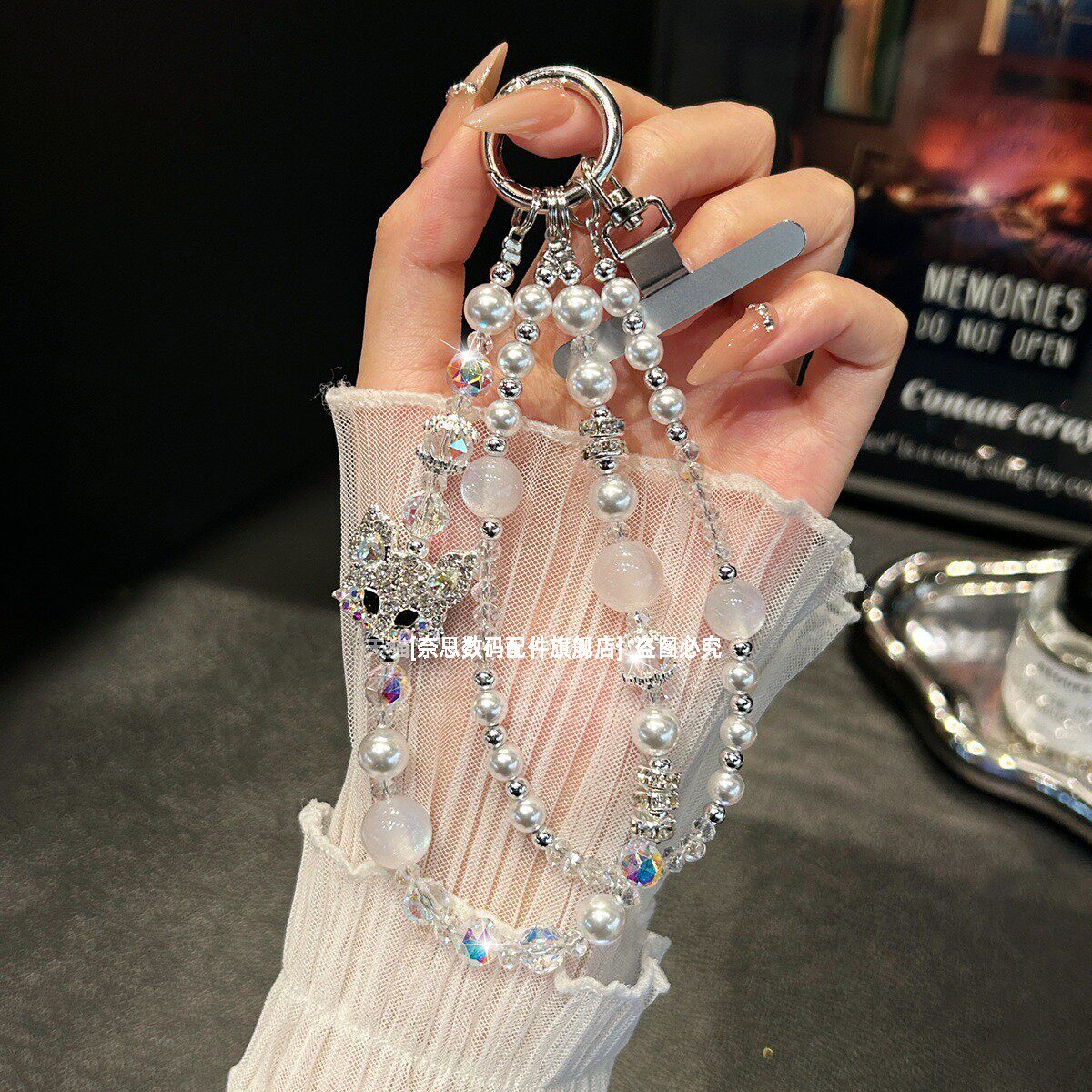 奢华高级感水晶手提链条手腕短挂绳带夹片壳钥匙扣包包挂件潮