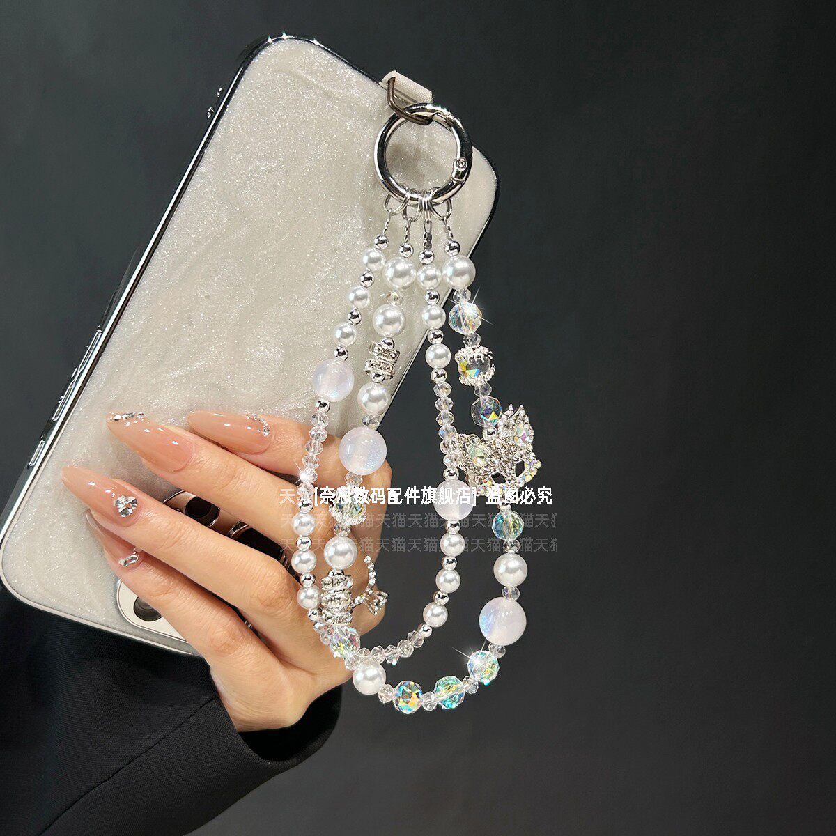 爆闪狐狸手机链挂饰精致水晶闪钻链条耐用珍珠手链轻奢高端手腕挂链原创高级腕带挂绳包包钥匙扣串珠女垫片壳