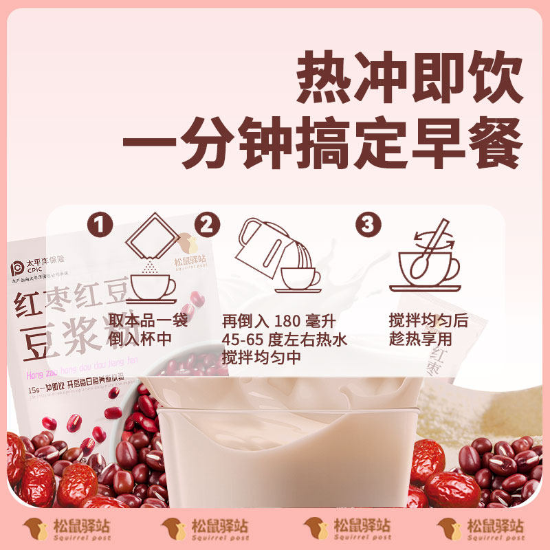 松鼠驿站红枣红豆豆浆粉高蛋白高膳食纤维0营养代餐早餐冲饮袋装