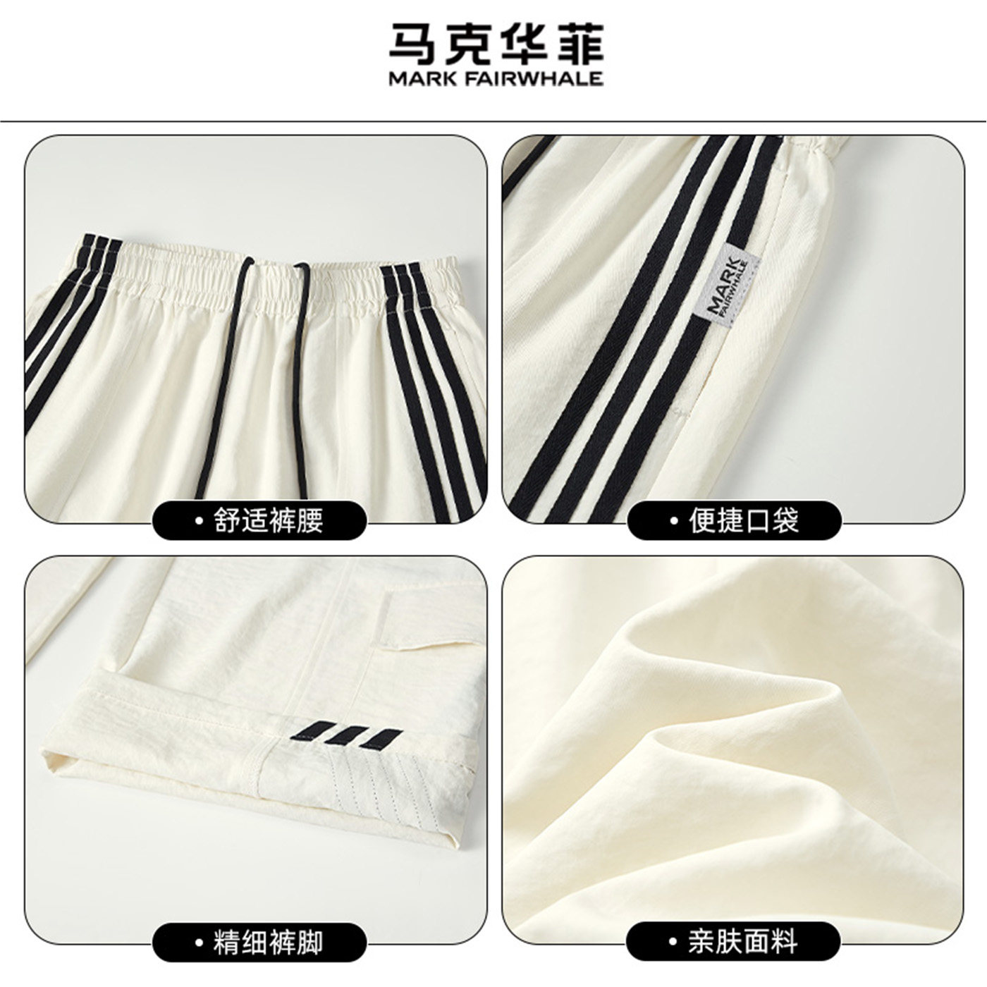 马克华菲2026春季新款美式条纹运动风阔腿裤男士宽松休闲裤直筒裤