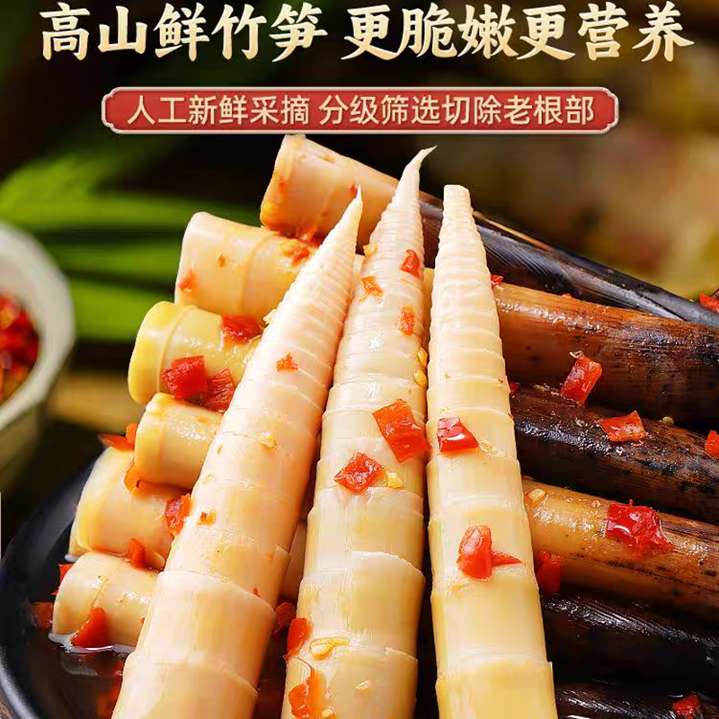 手剥笋泡椒味竹笋新鲜笋尖开袋即食休闲整根减盐袋装健康解馋辣味