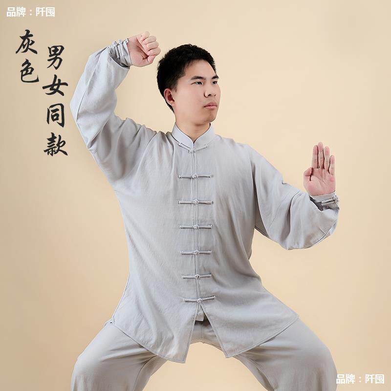 。棉麻太极服男春夏季武术服团体练功服男女太极拳服晨练服套装