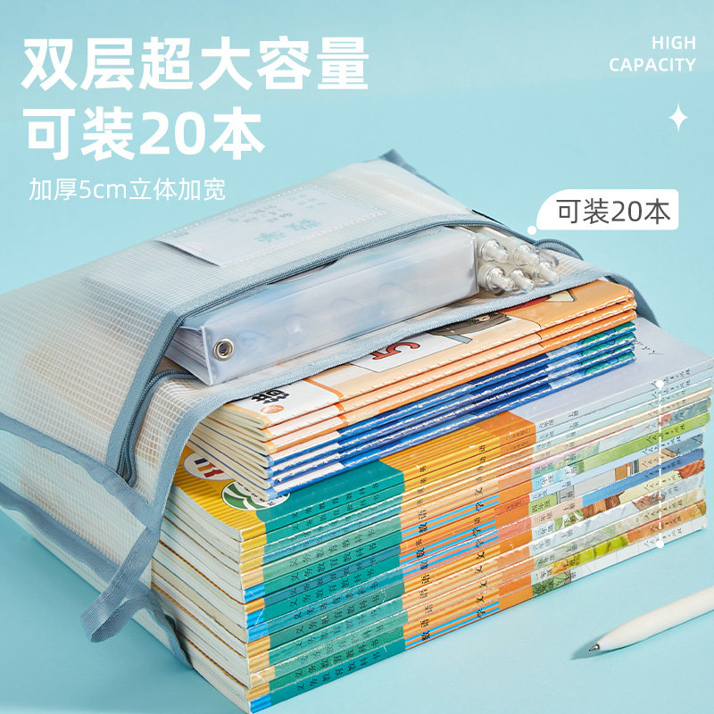 三年二班 A4文件袋透明文件收纳袋大容量网格拉链式防水档案袋学科科目分类小学生试卷袋子资料书本作业袋
