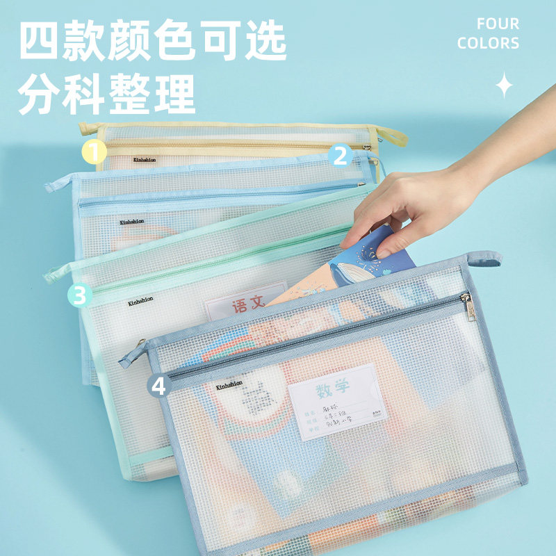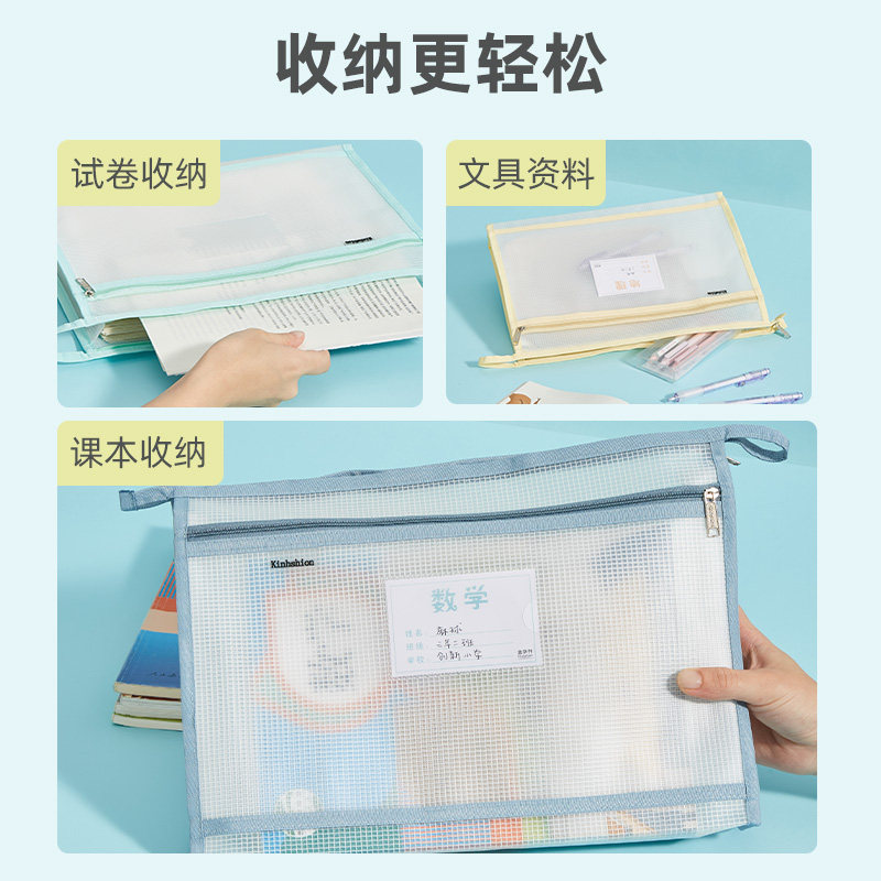 网格文件袋加厚透明网格拉链袋A4试卷收纳袋学生用考试文具袋防水笔袋办公用品批发公文档案袋资料袋包邮