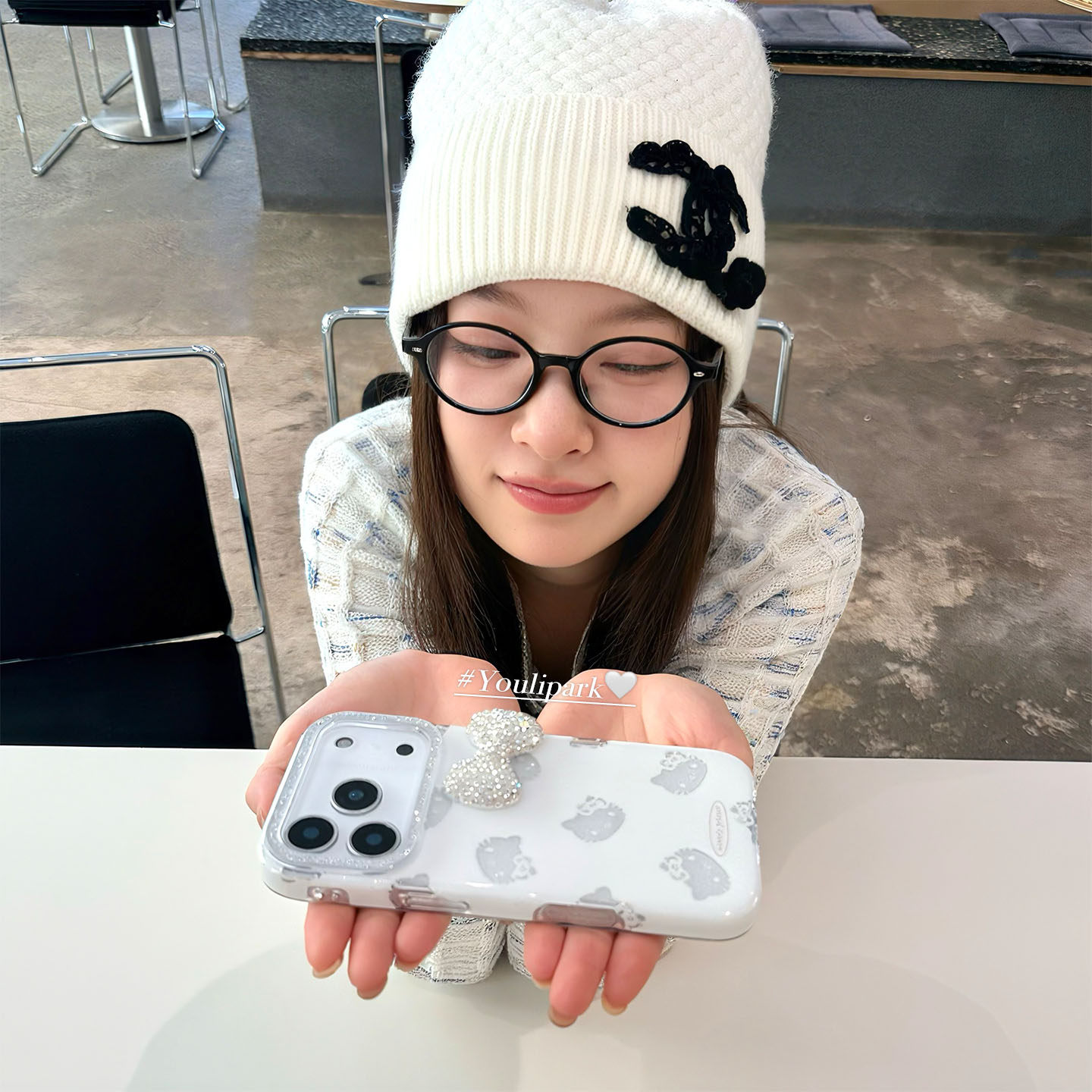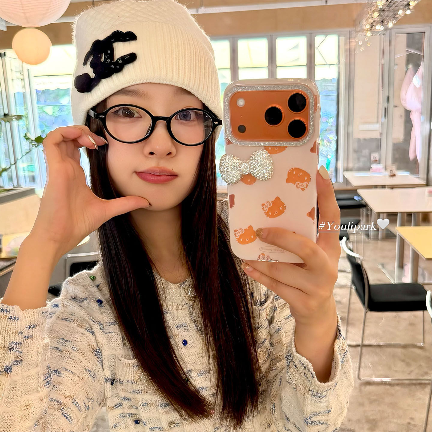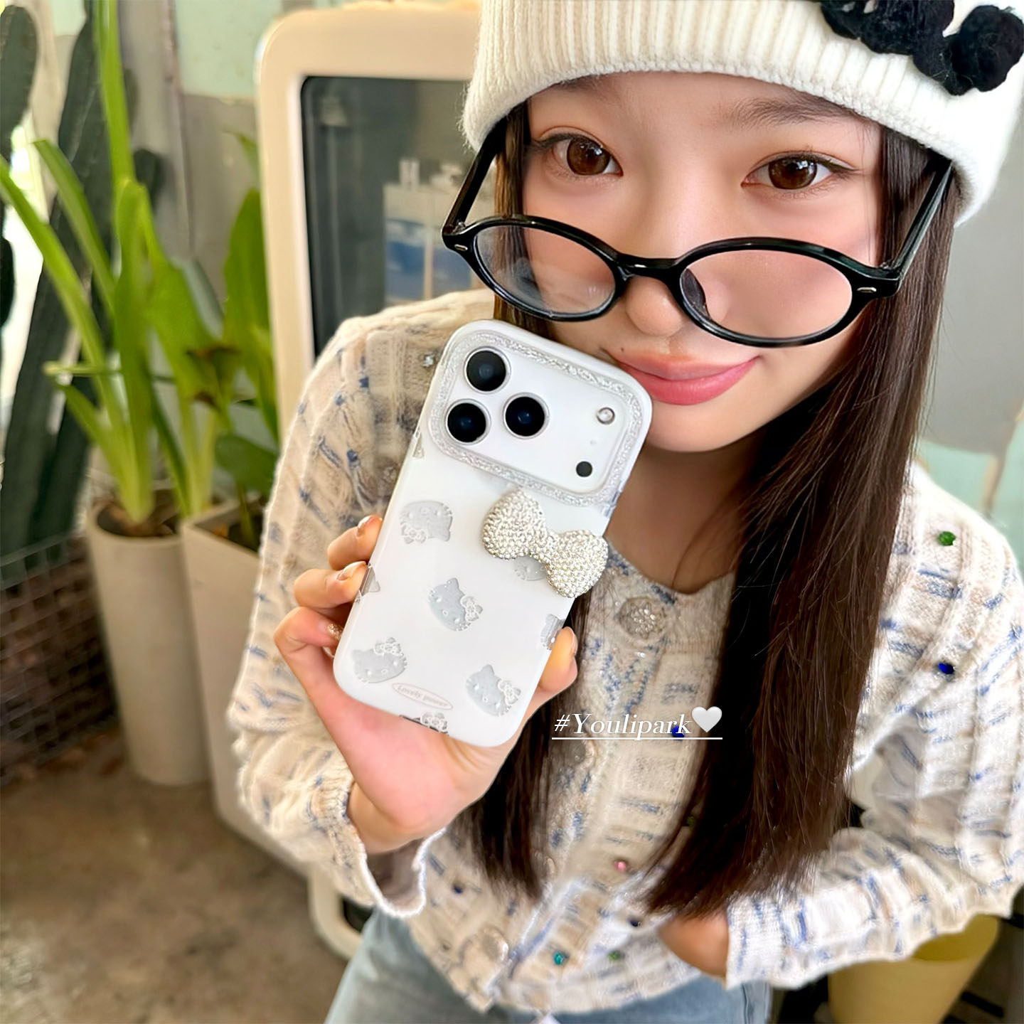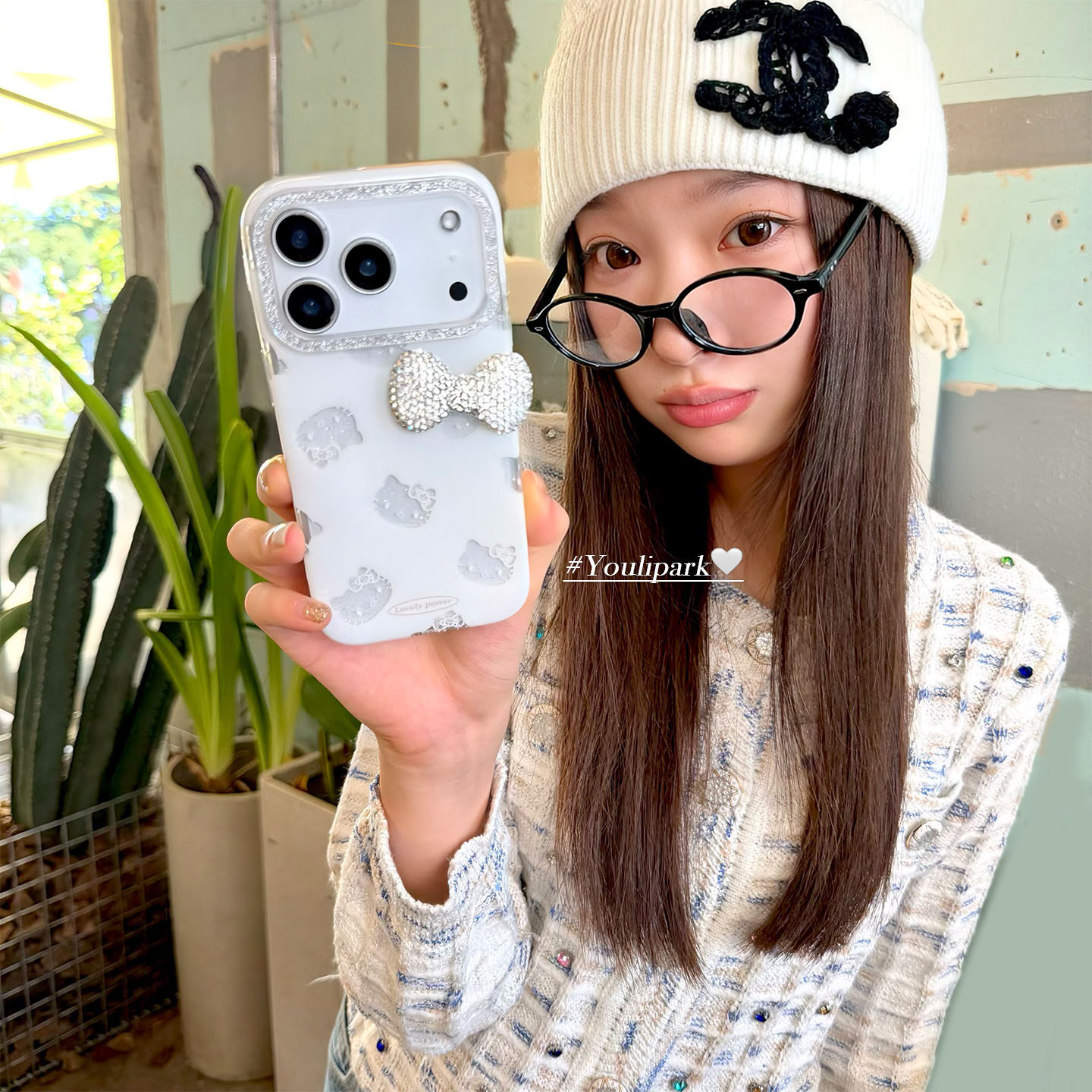由里公园ins少女气质珍珠白闪钻蝴蝶结猫咪17适用17pro苹果17ProMax手机壳iPhone16全包14新款16Promax保护套