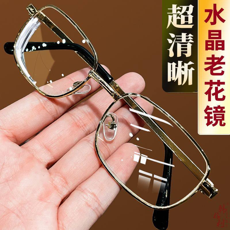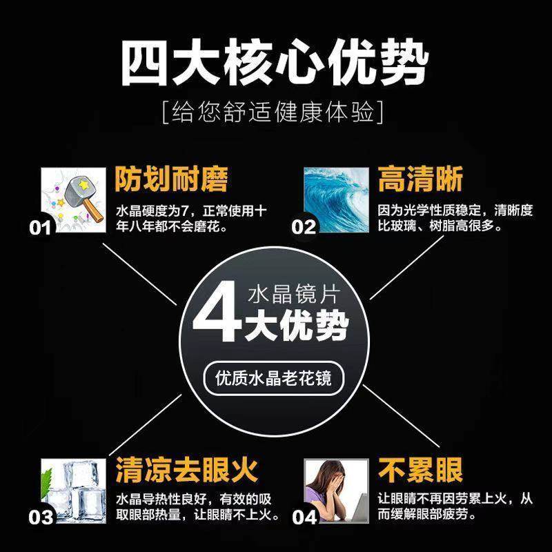 纯钛水晶石老花镜男女高档中老年高清耐磨老光眼镜东海老人眼镜框