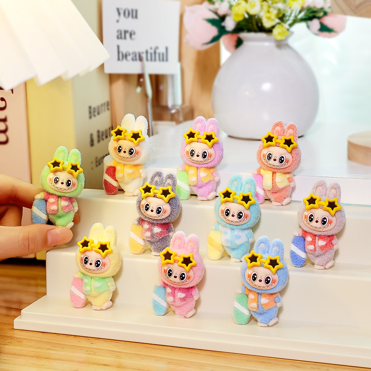可爱风植绒魔法师兔子萌粒公仔车载桌面小摆件直播对对碰盲袋批发