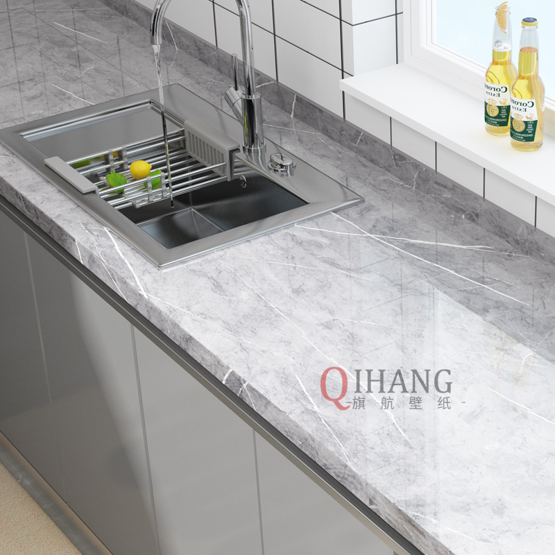 加厚大理石厨房防油贴纸耐高温防水台面自粘灶台墙纸翻新防火橱柜