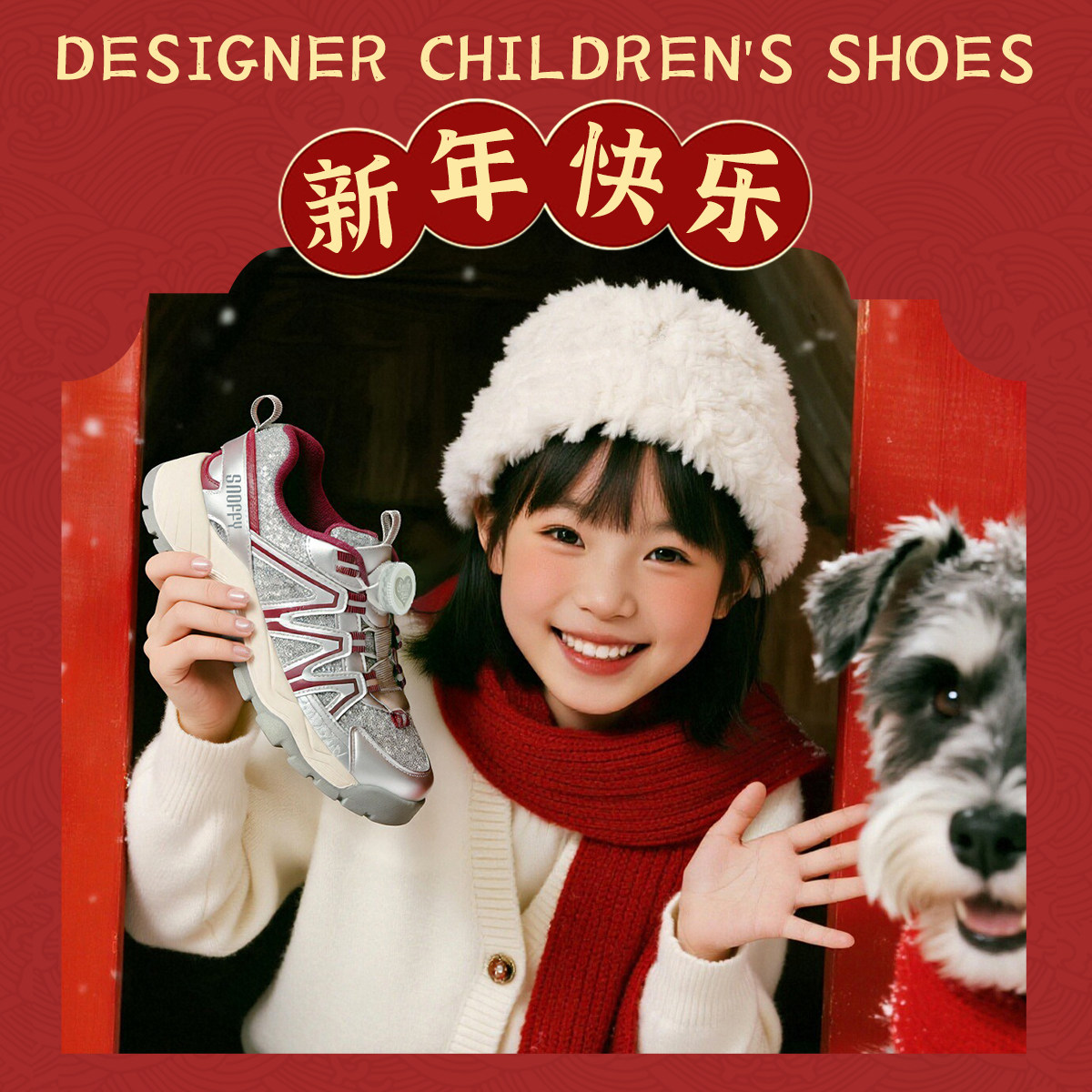 【蜜蜂心愿社】斯纳菲女童运动鞋新年款红色旋钮加绒软底体闲鞋