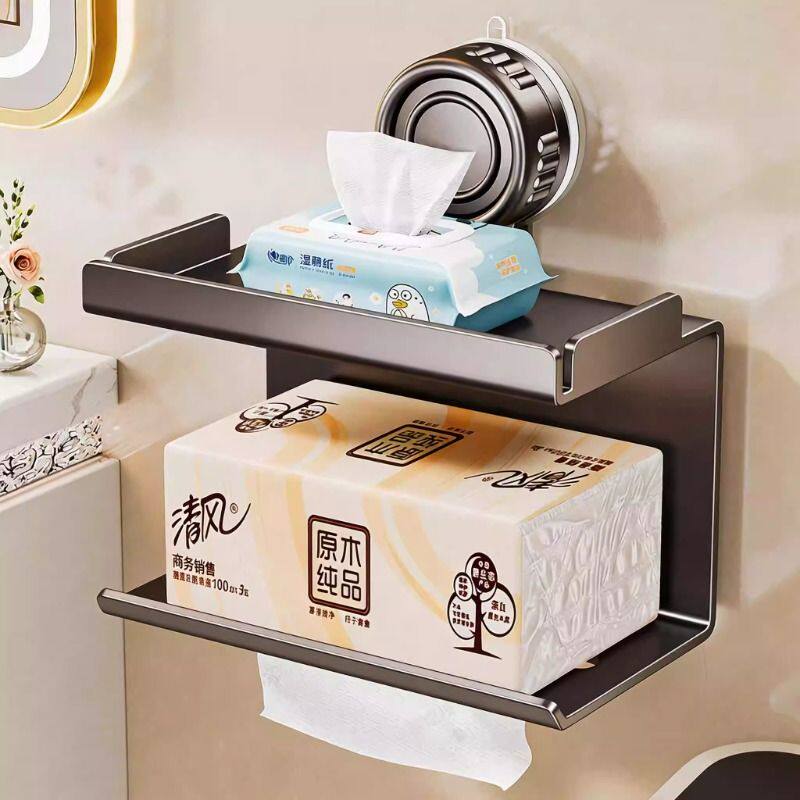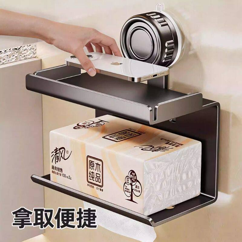 吸盘卫生间厕所纸巾盒壁挂式置物架抽纸纸盒免打孔洗手间卷纸