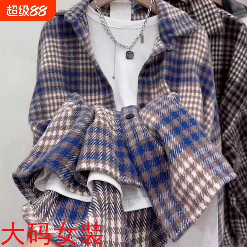 港风复古磨毛格子衬衫女2025新款时尚宽松百搭中长款休闲外套大码