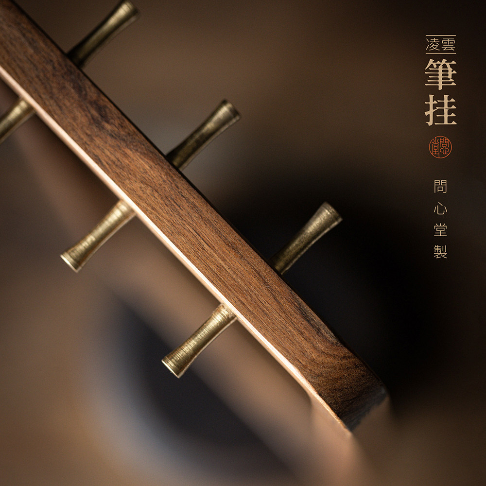 问心堂凌云毛笔架笔挂铜制挂件檀香木毛笔挂新中式笔挂简约文房笔挂高档实木摆件笔挂书画用品毛笔挂