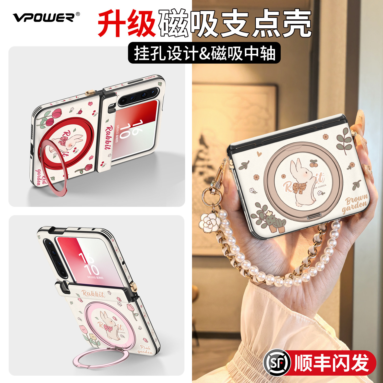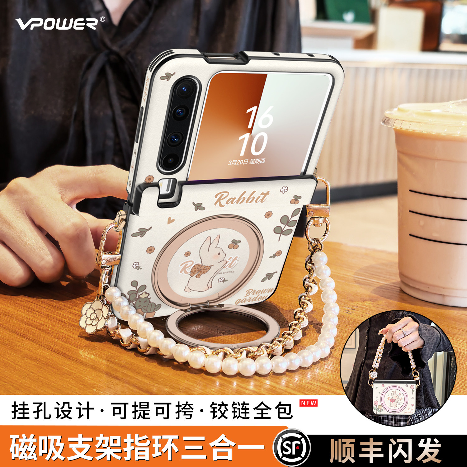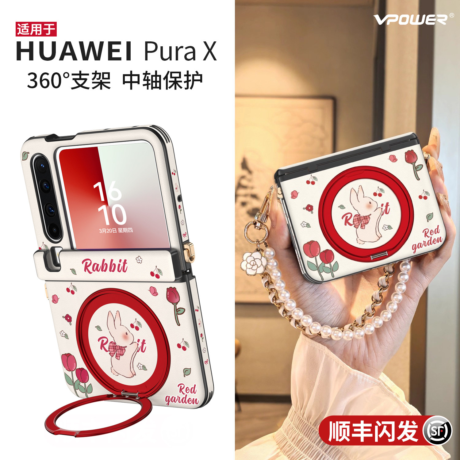 360磁吸旋转支架适用华为purax手机壳新款pura典藏版x中轴全包带挂绳防摔卡通兔子超薄高档皮纹保护外壳链条