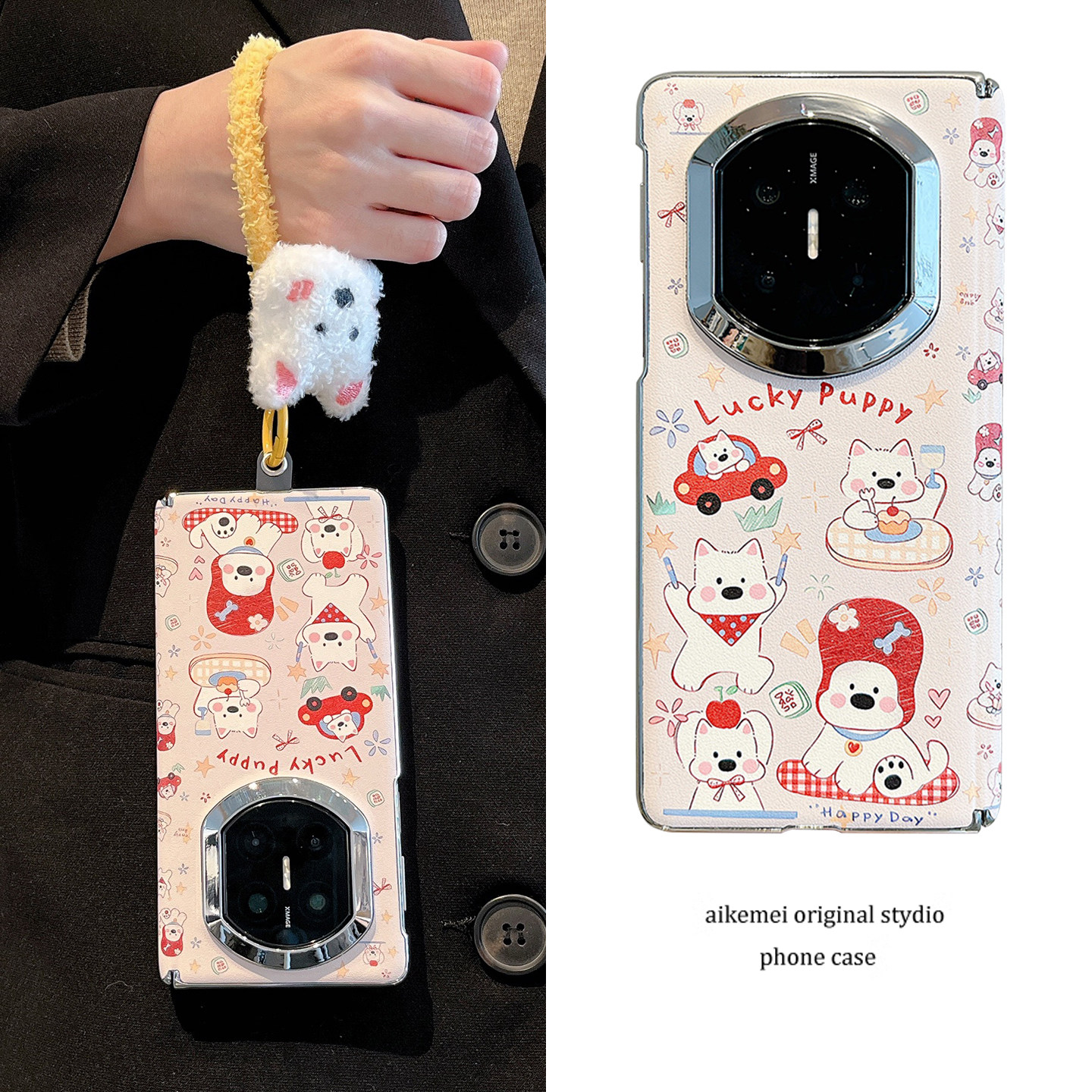 适用华为MateX7折叠屏手机壳趣味卡通可爱汽车小狗MateX6典藏版毛绒公仔挂绳MateX5x3链条中轴皮套防摔男女款