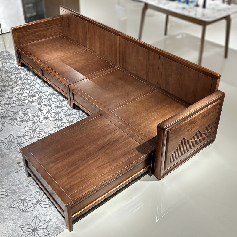 新中式乌金木实木沙发组合大小户型客厅冬夏两用别墅现代储物家具