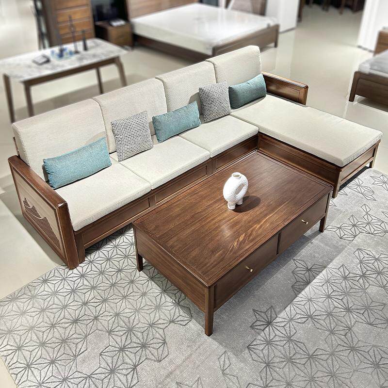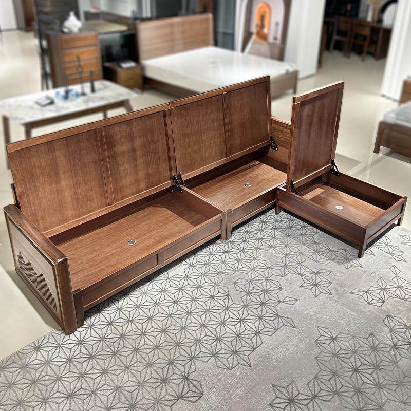 现代简约全实木沙发高端小户型客厅胡桃木四人位直排储物冬夏两用
