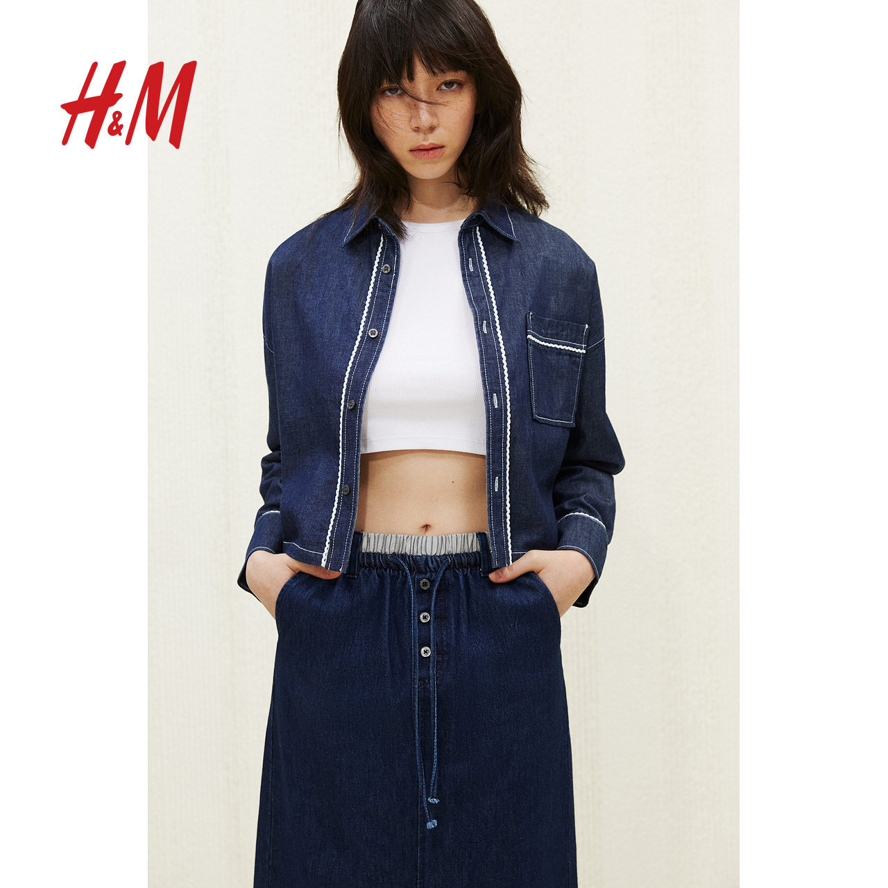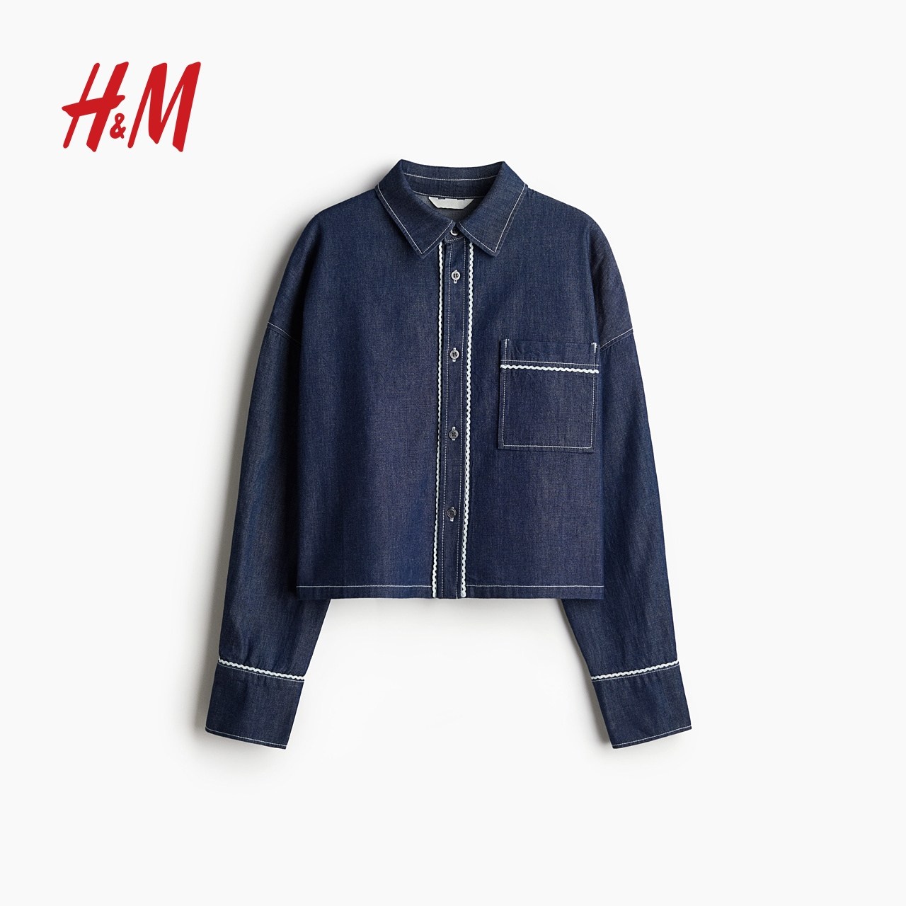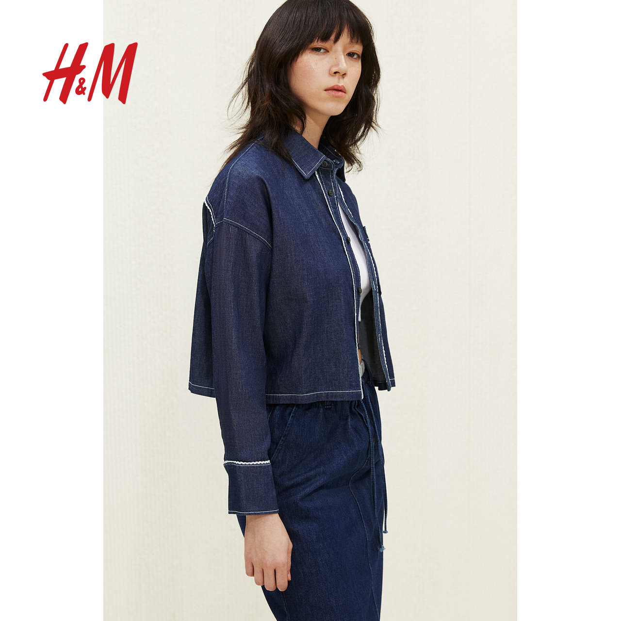 HM女装衬衫2025冬季新款miu系学院风斜纹布翻领长袖上衣1277420
