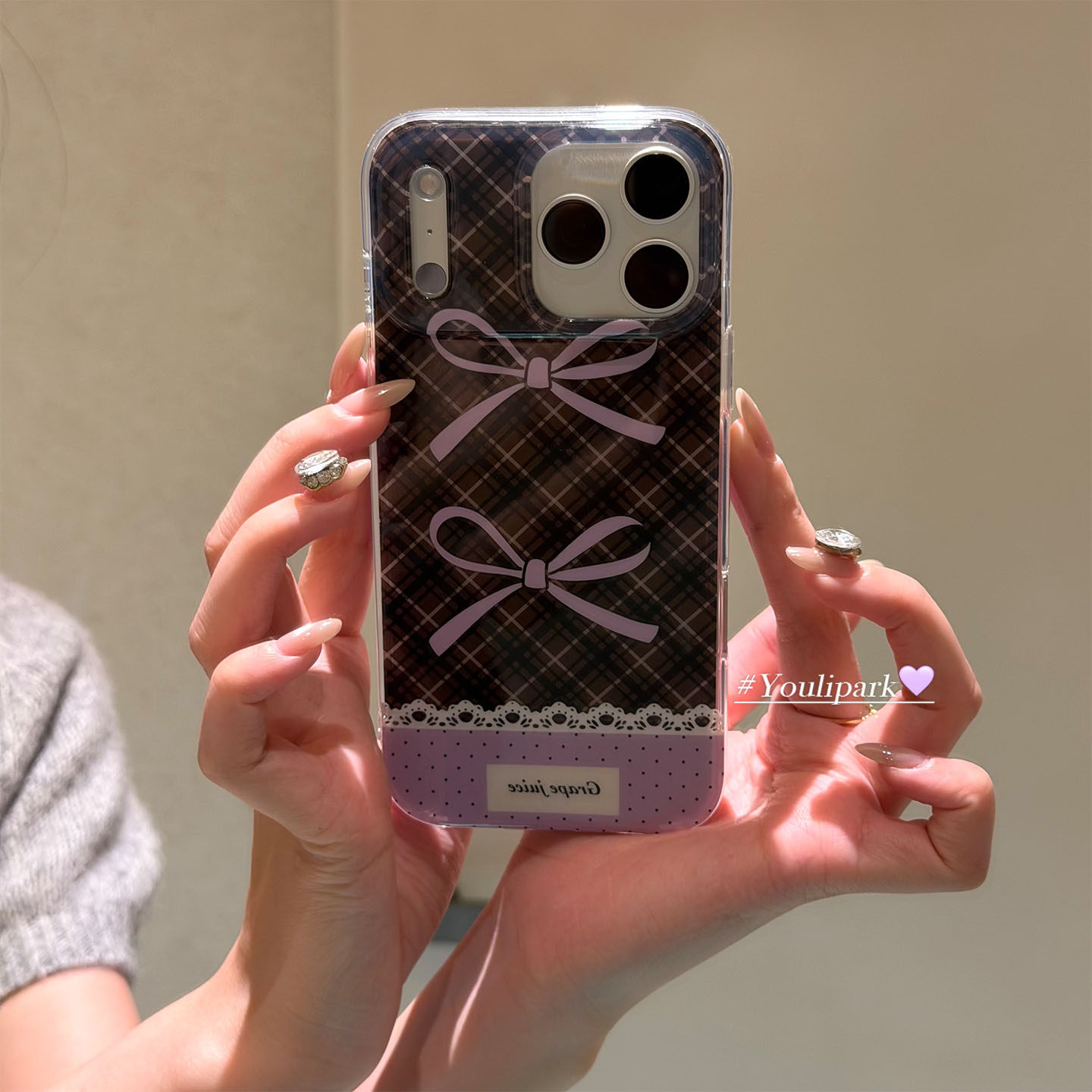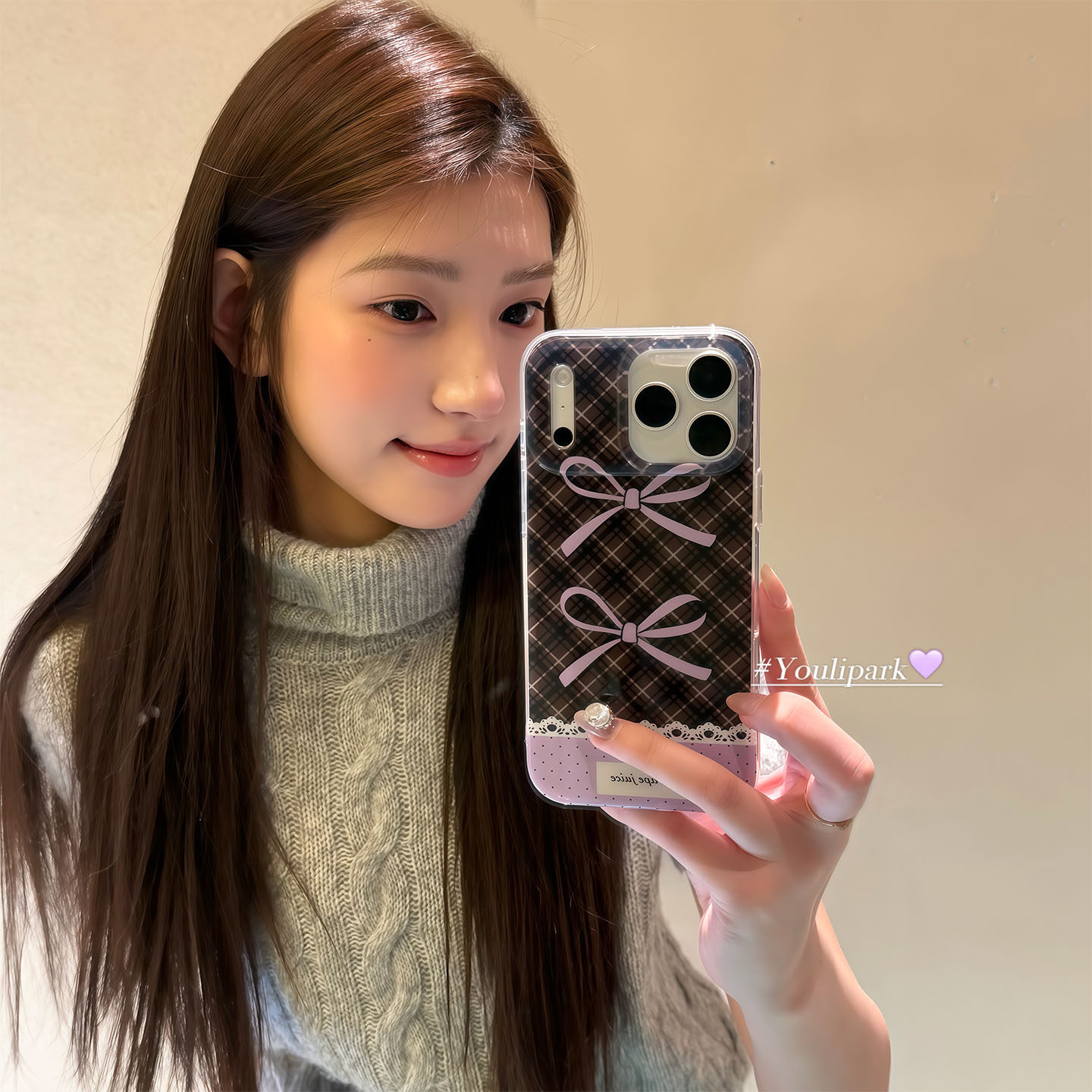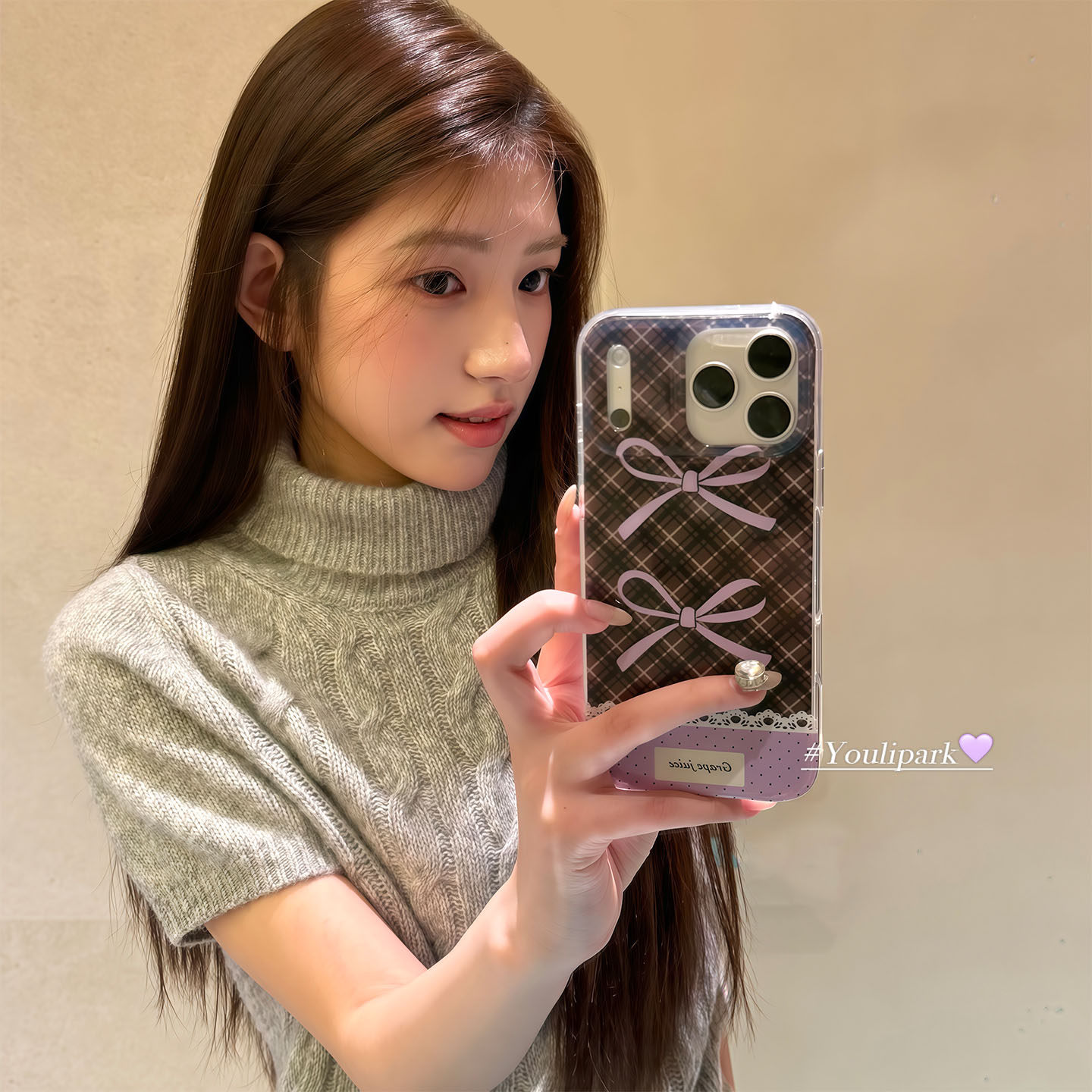 由里公园ins韩系少女蕾丝格纹藤萝紫蝴蝶结适用17pro苹果17ProMax手机壳iPhone16全包14新款16Promax保护套13