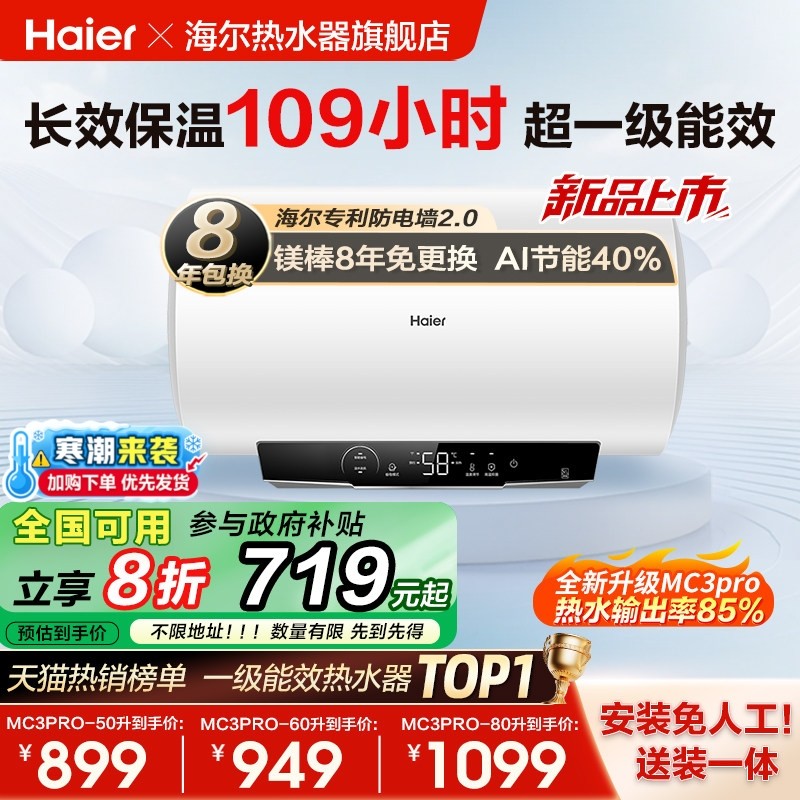 [政府换新补贴]海尔电热水器官方家用卫生间洗澡一级能效MC3pro
