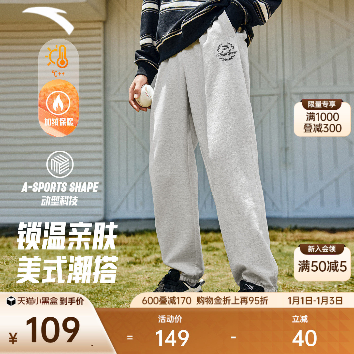 安踏美式复古运动长裤男士潮流休闲束脚裤子宽松百搭针织加绒卫裤