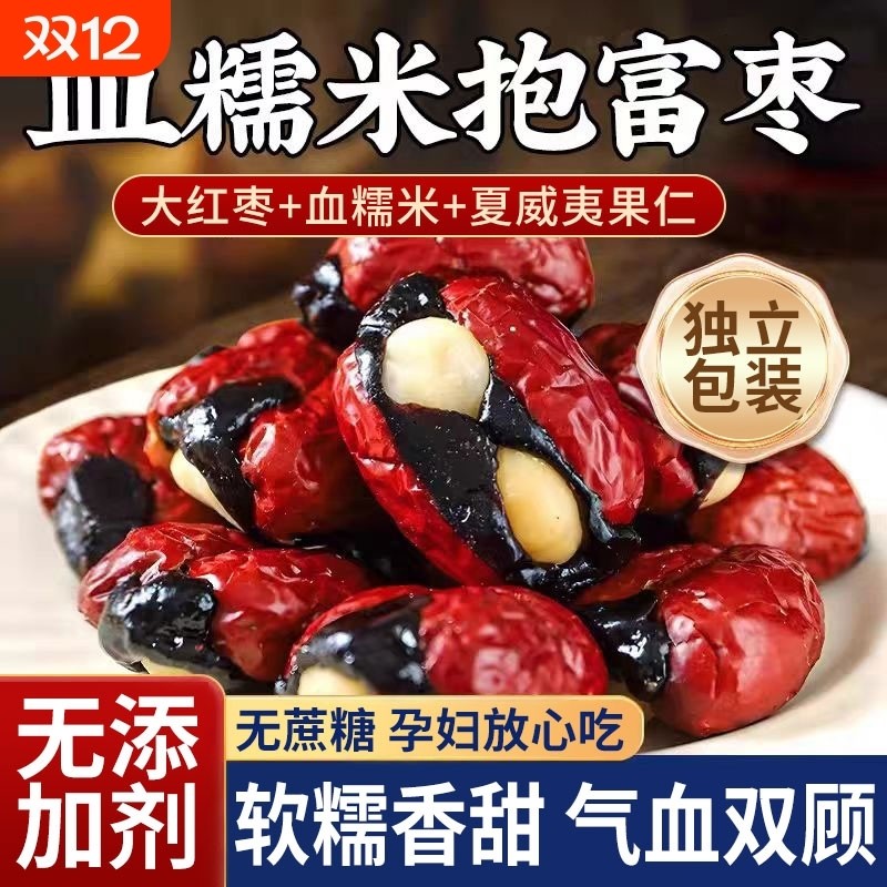 抱富枣血糯米抱抱果夹心红枣补无添加气血孕妇枣仁派手工制作零食