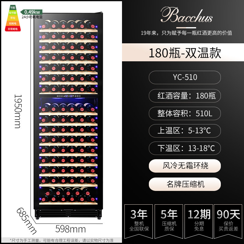 Bacchus/芭克斯YC-510恒温红酒柜商家用客厅风冷冰吧嵌入式双温