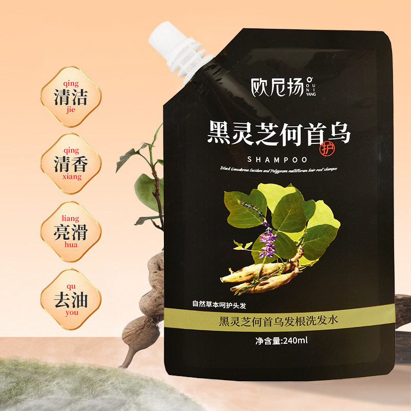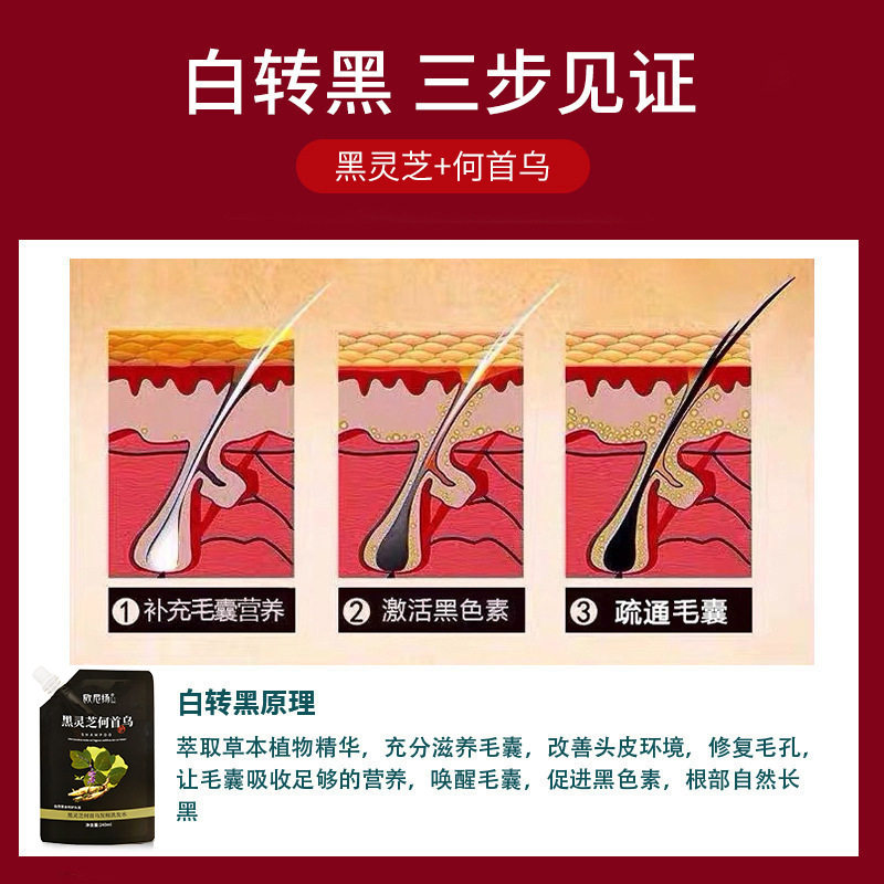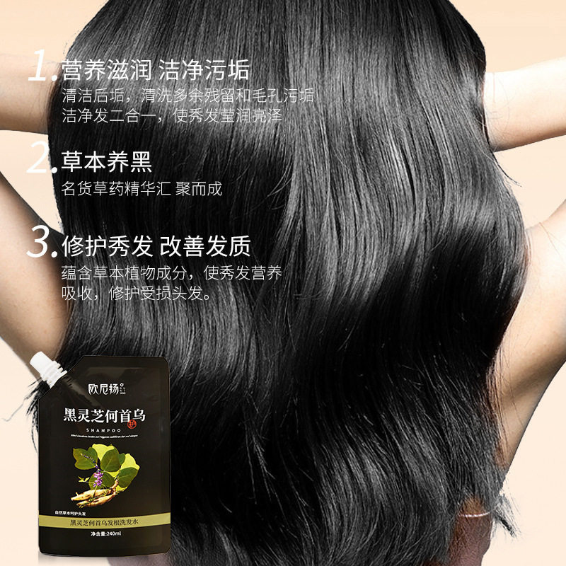 黑灵芝何首乌洗发水官方正品旗舰店露侧柏叶柔顺精华液女植物黑发