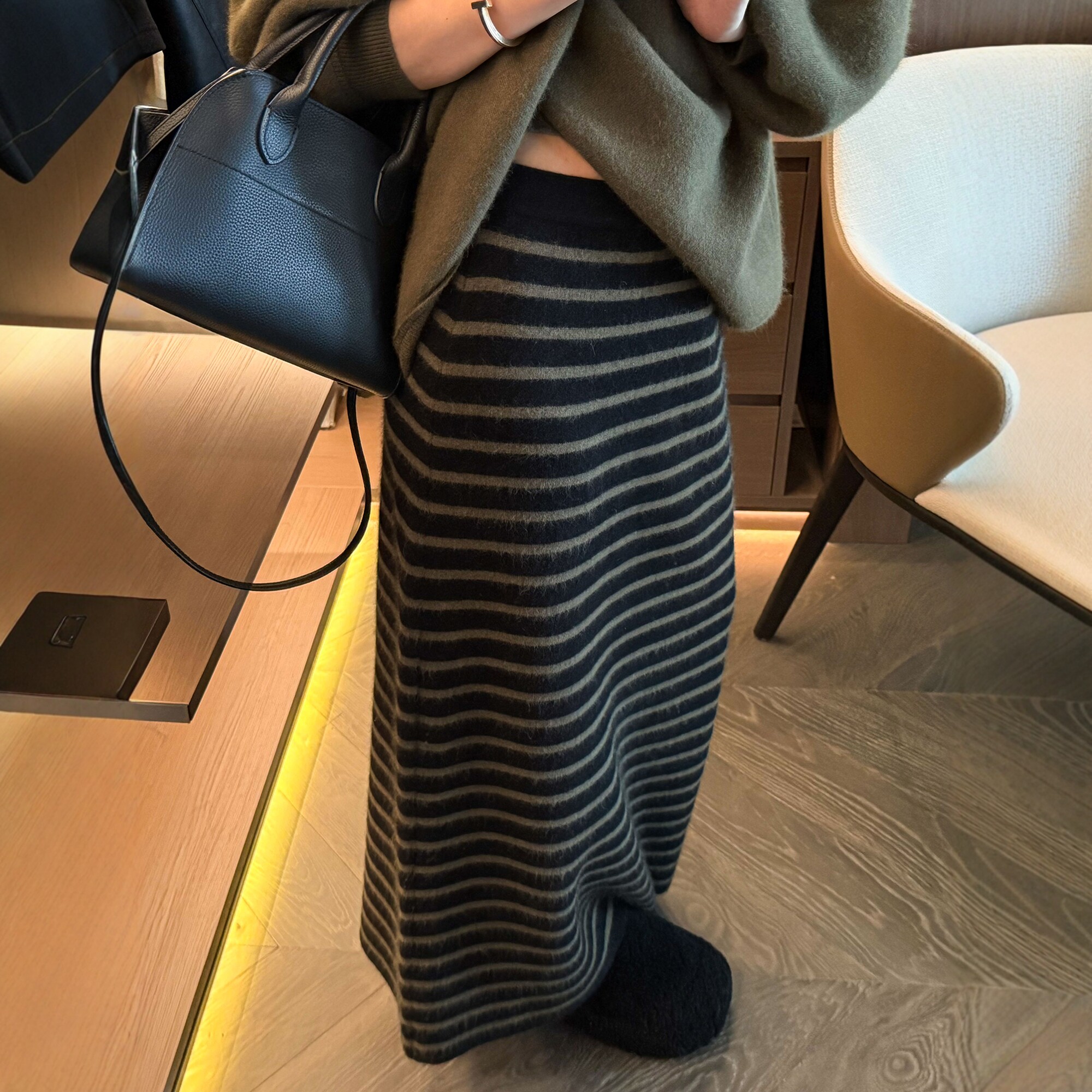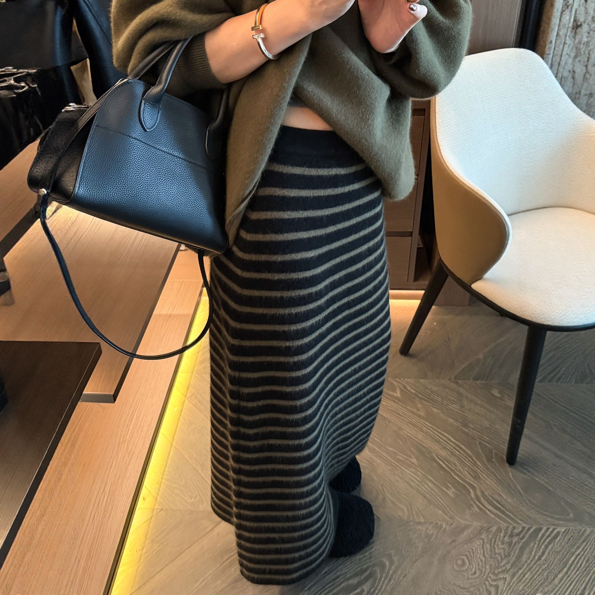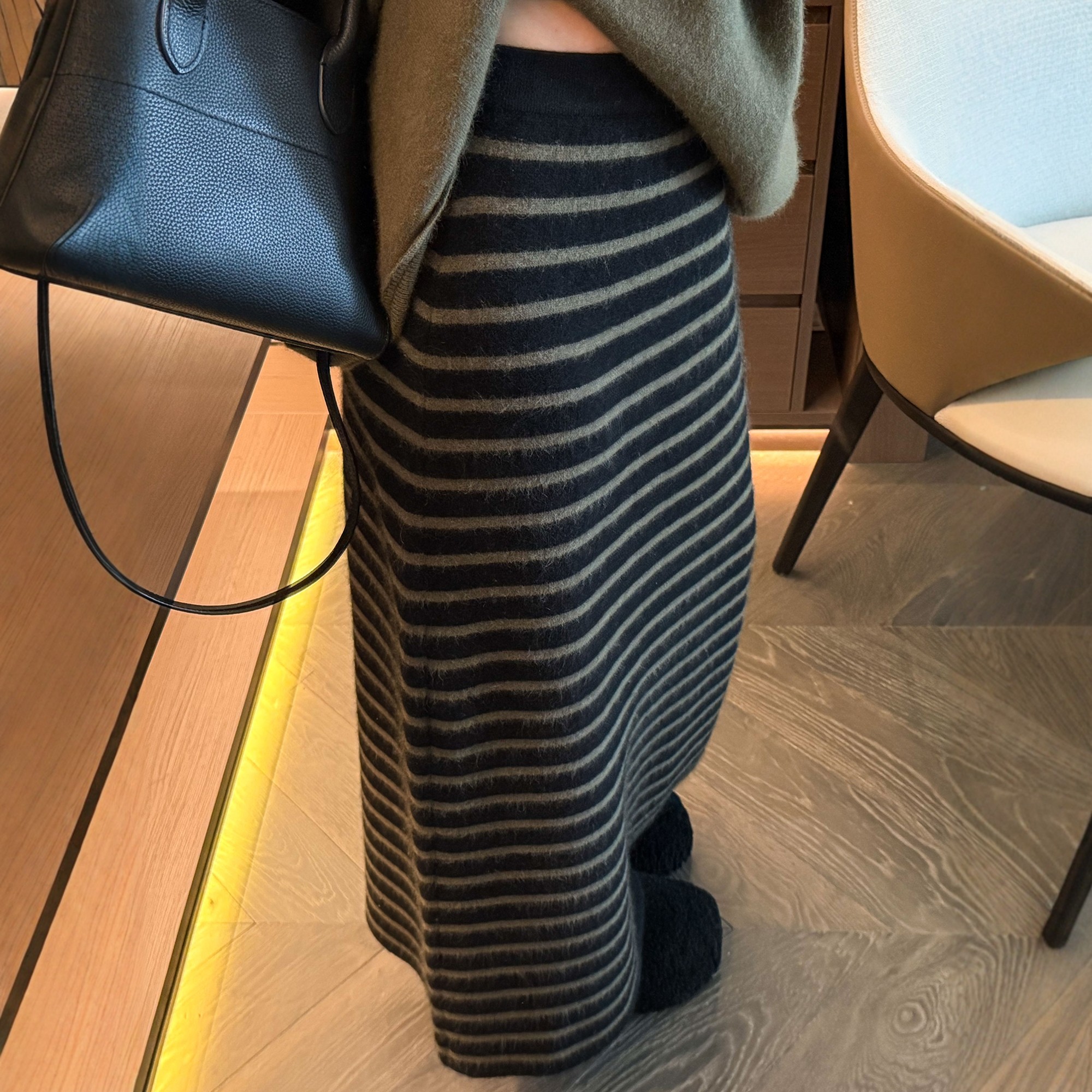 撞色条纹羊毛针织半身裙女欧洲站2025冬装新款欧货女装包臀裙子潮