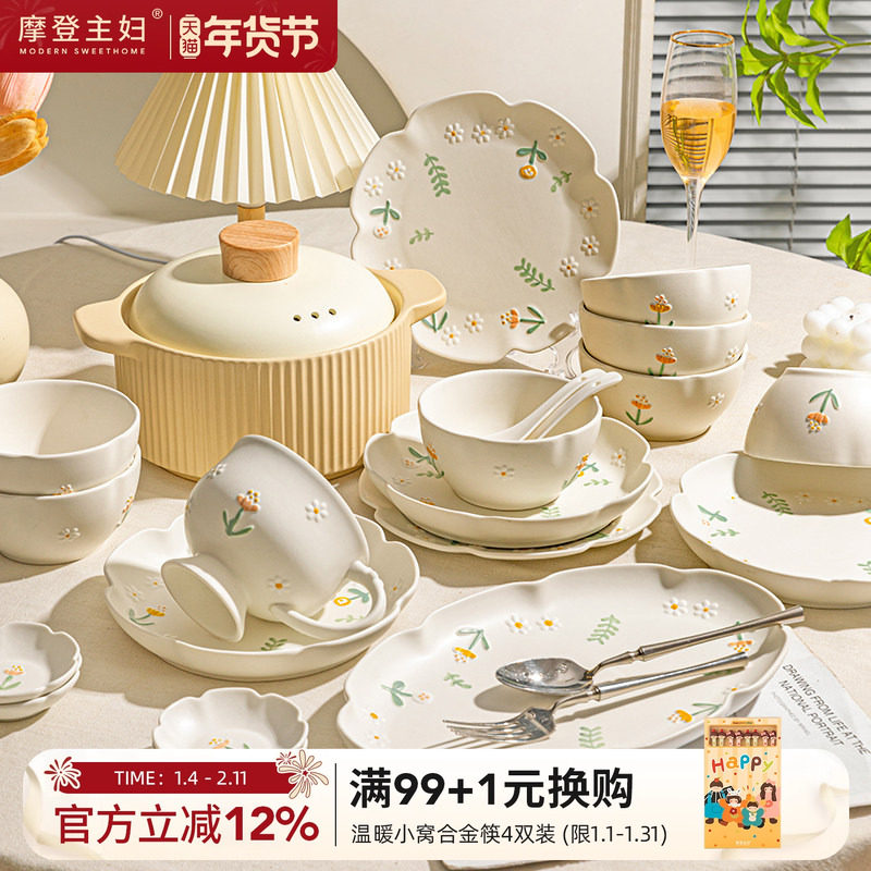 摩登主妇餐具2026新款釉下彩高颜值乔迁新婚礼物碟筷碗盘套装家用