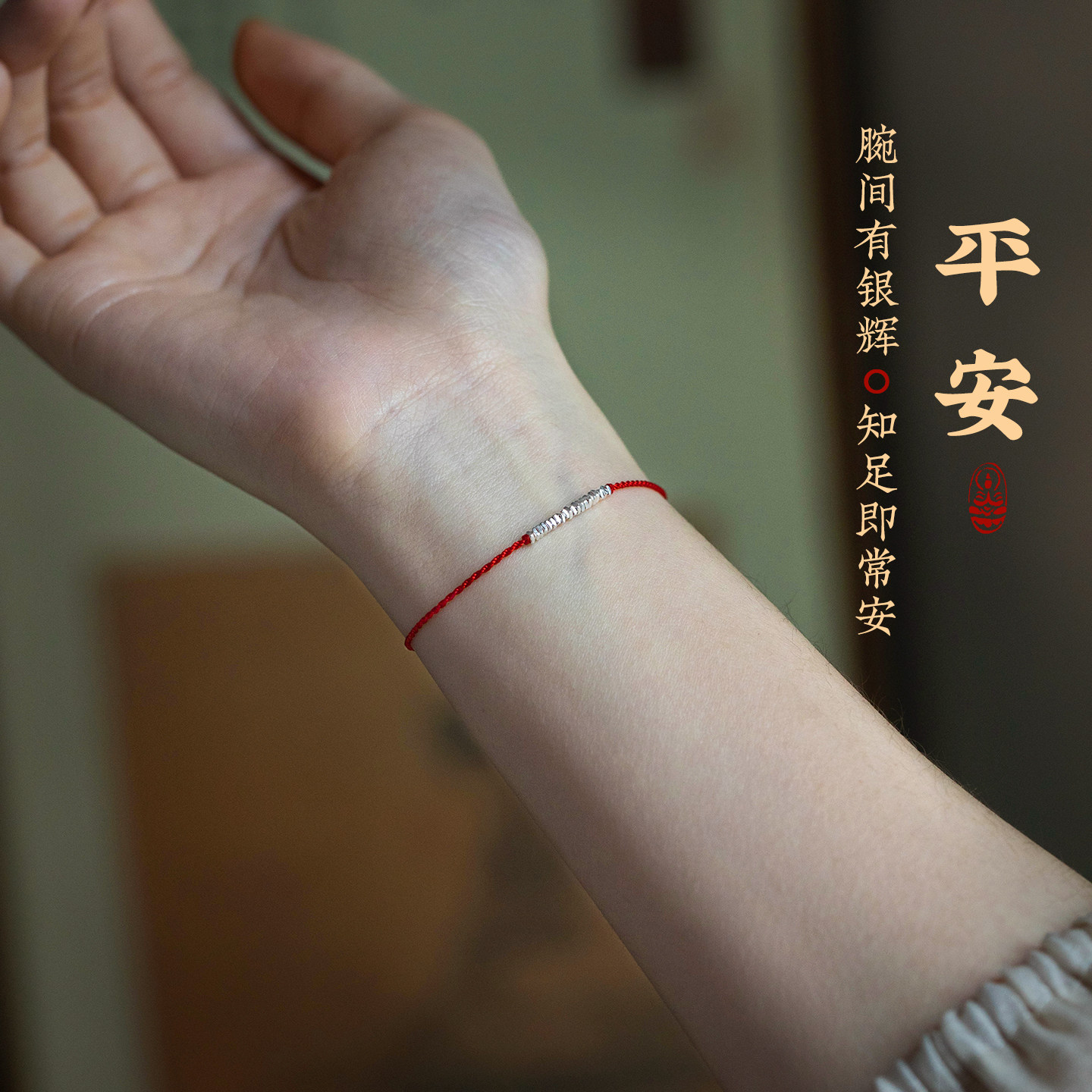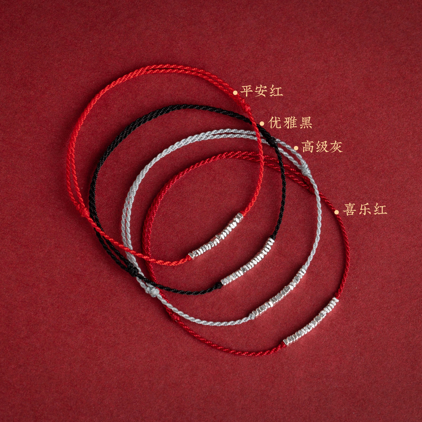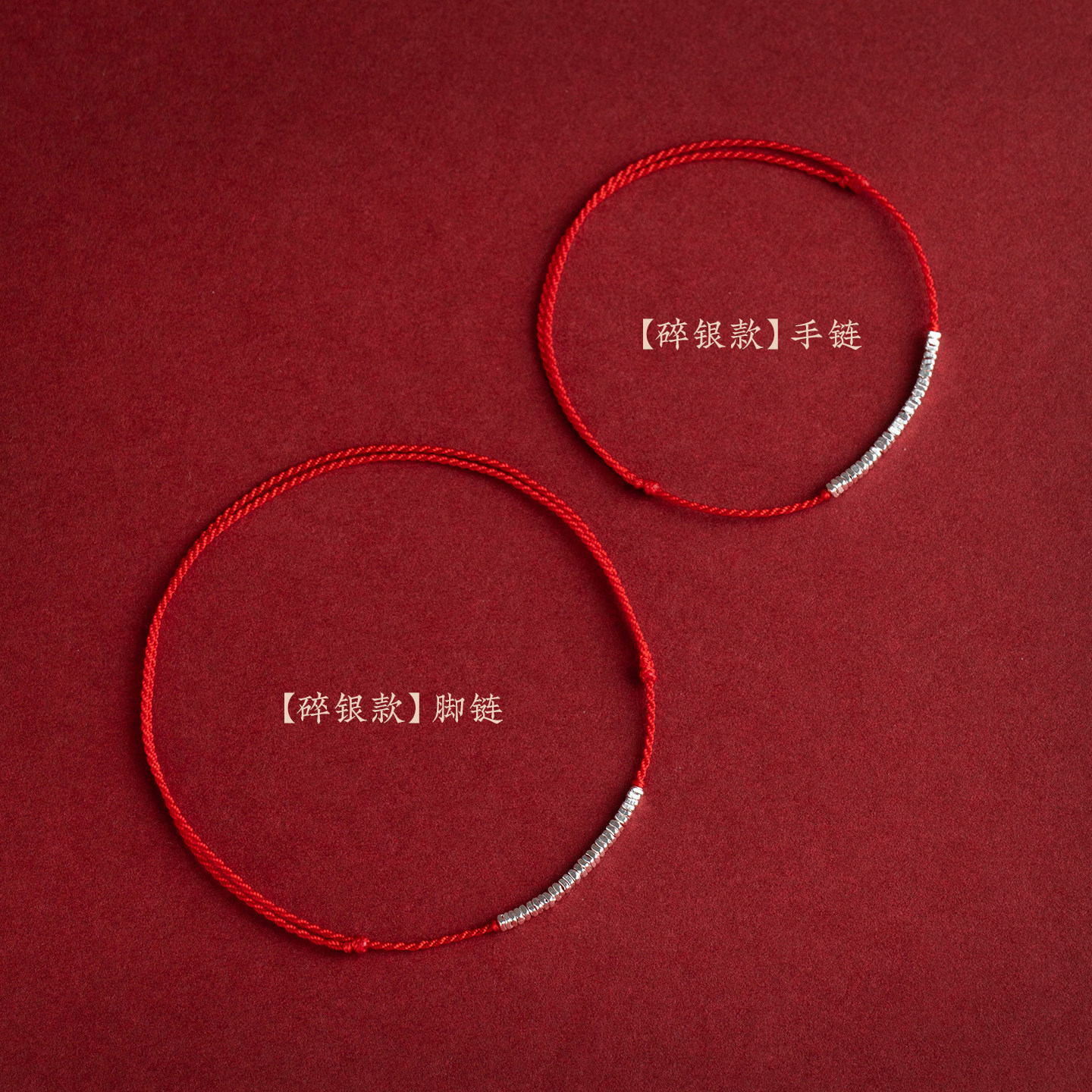 大善堂精致s925纯银碎银子手绳手工编织马年红绳本命年脚链可调节